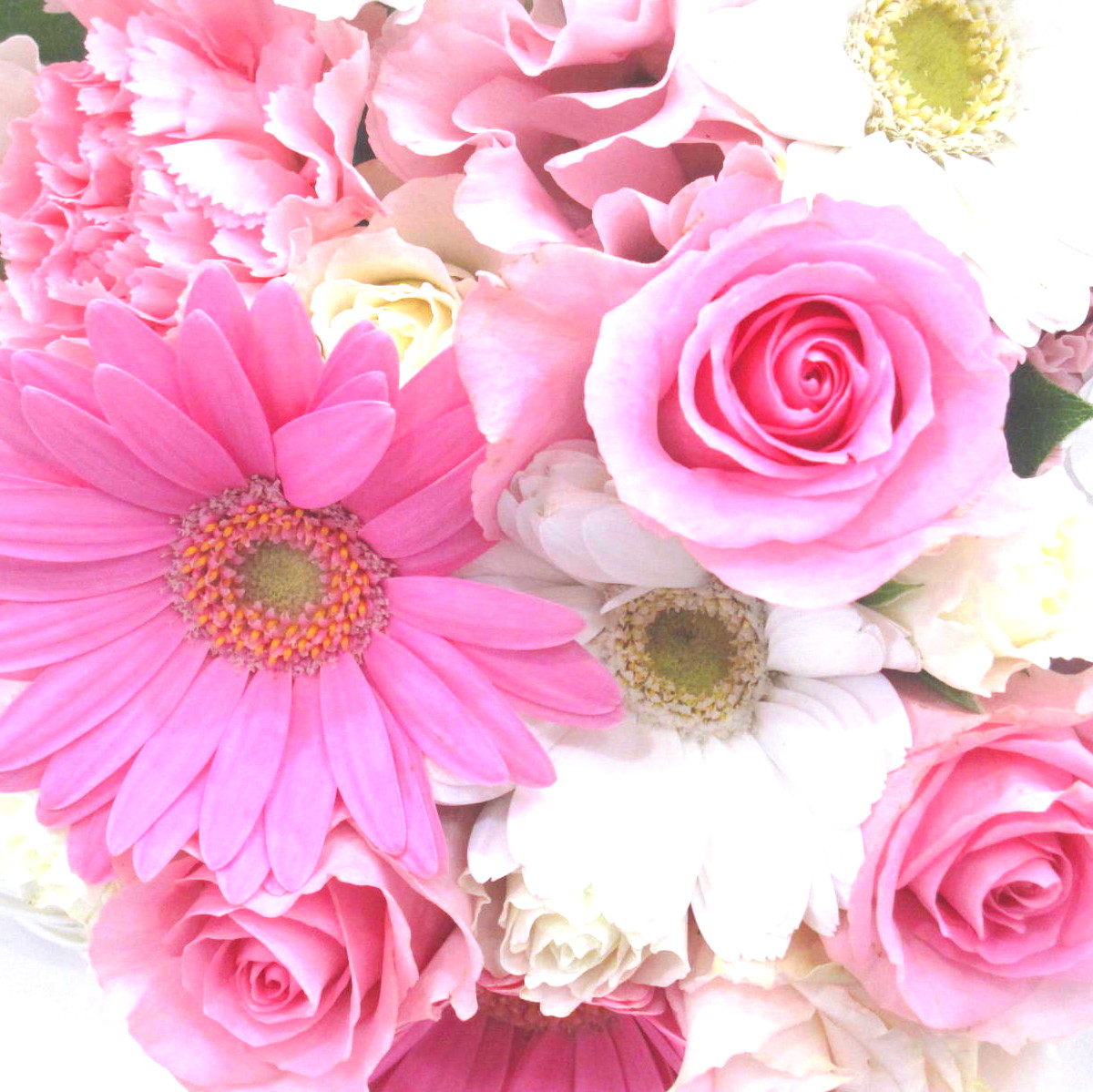 花材: メイン バラ、ガーベラ、トルコギキョウ、カーネーションなど その他 葉物類など