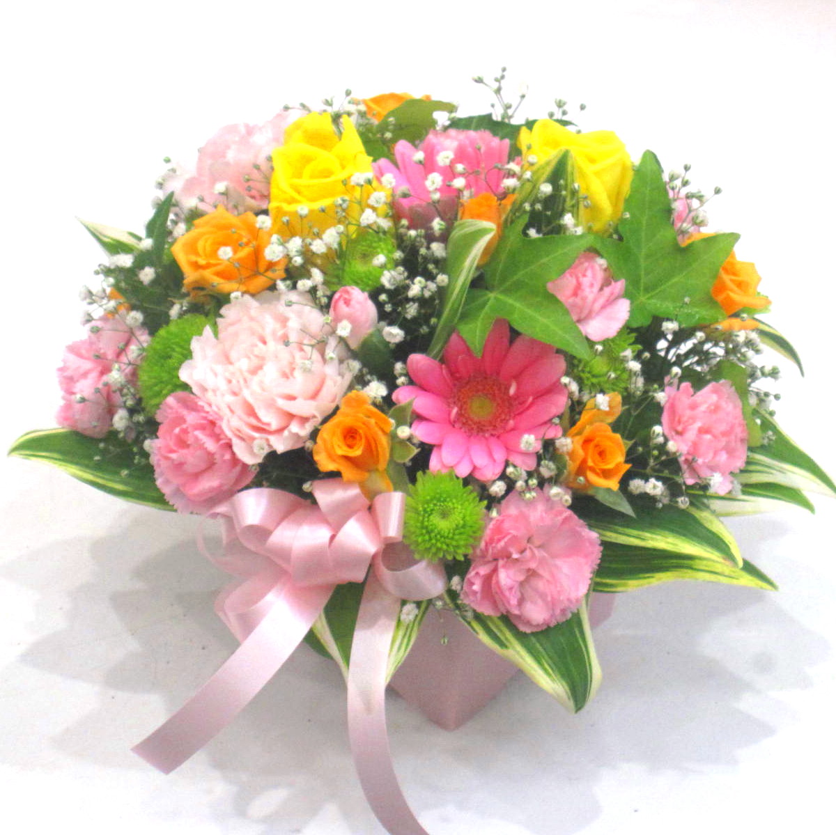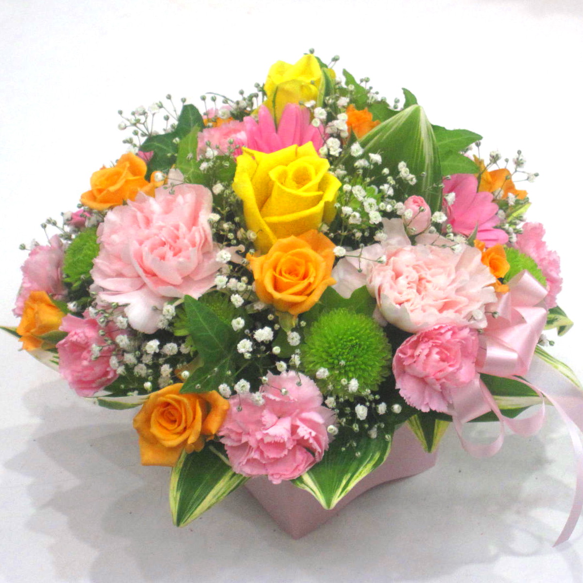 バラやガーベラ、ミニカーネーションが入っている通年通して人気のアレンジメントです。ふんわり可愛い雰囲気のギフトにピッタリです。きっととびっきりに喜んでいたただけると思います。当店ではお客様の想いを大切に【こころを込めて】お作りいたします。静岡県長泉町から宅急便で全国にお届けします。是非、さまざまな贈り物に。