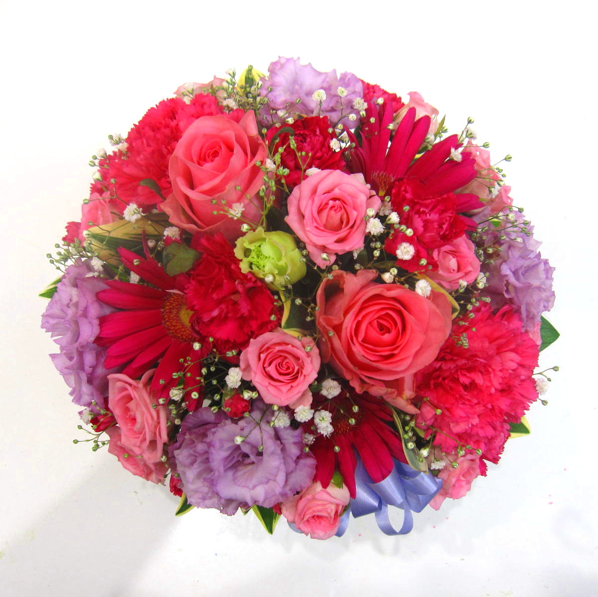 花材: メイン バラ、ガーベラ、トルコギキョウなど その他 かすみ草、葉物類など