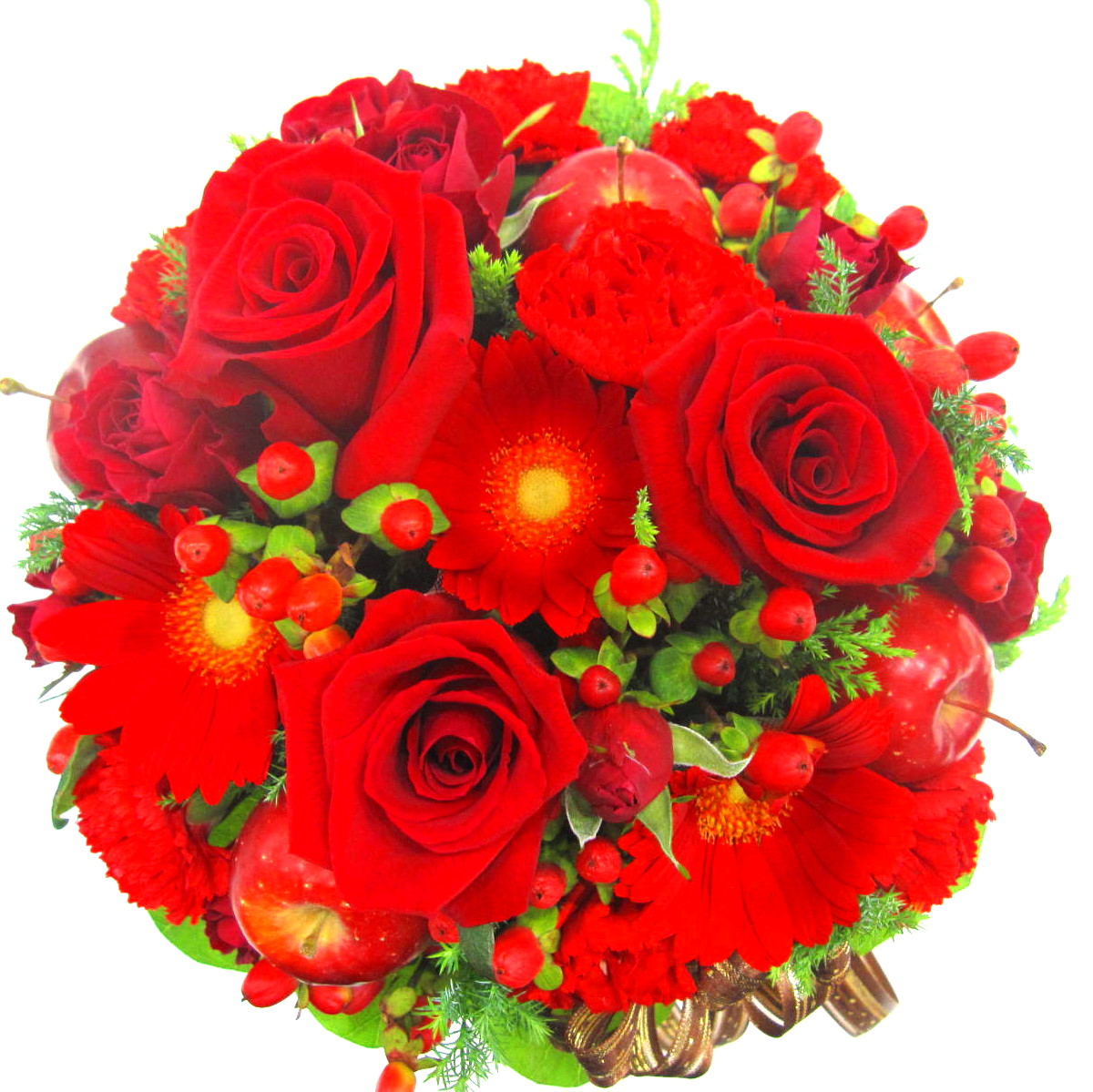 花材: メイン バラ、ガーベラ、カーネーションなど その他 実物類、葉物類など