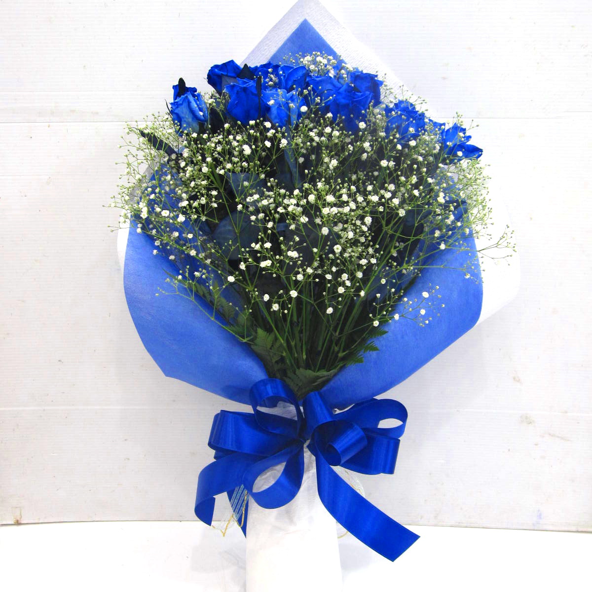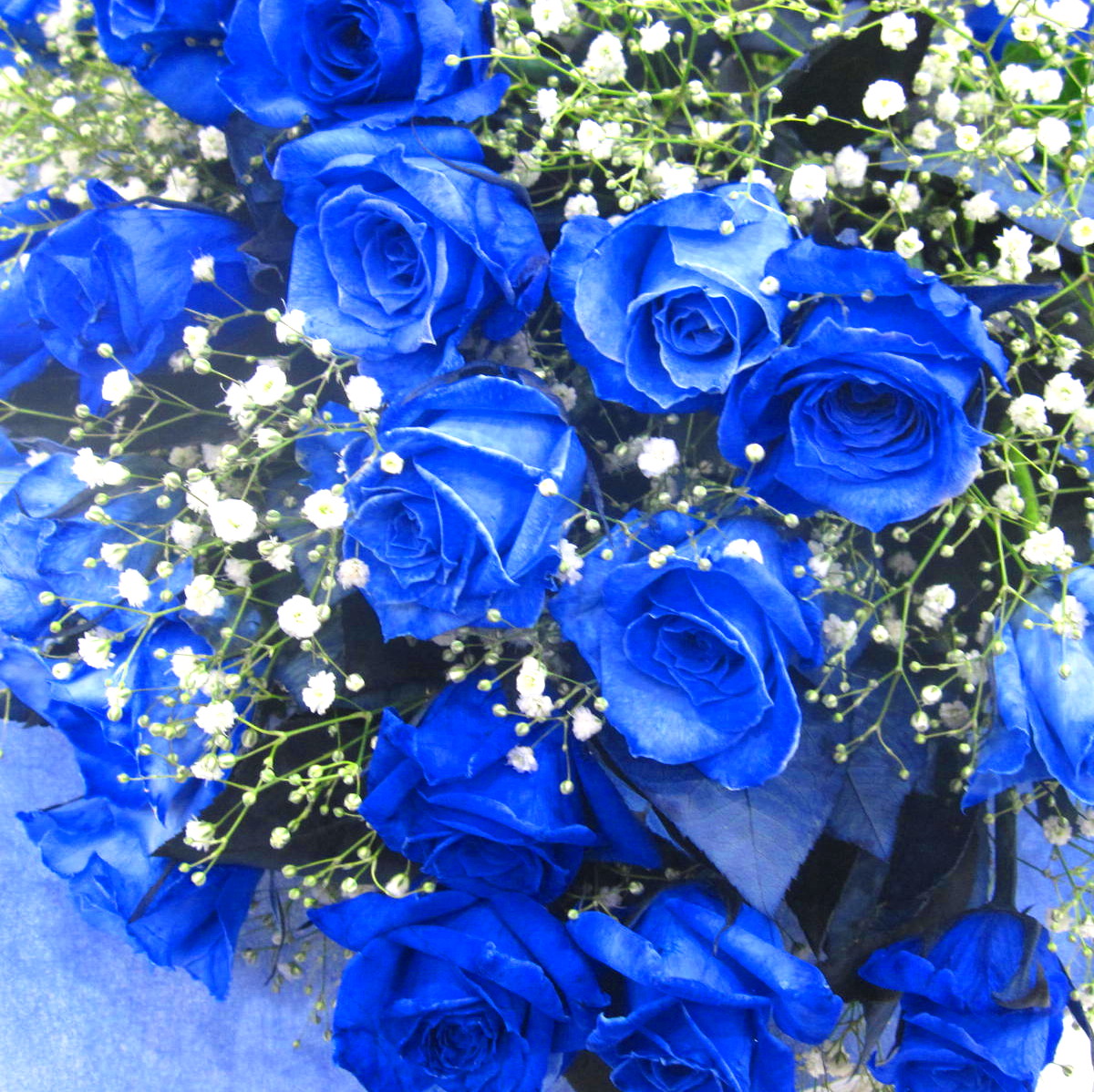 ボリューム感抜群!!当店大人気の青いバラとかすみ草の上品で神秘的な花束。【15時迄のご注文で翌日届きます】【ご希望の本数指定でもお作りします】※こちらの商品についてのご相談、ご質問等ございましたら(メール)または(お電話)にて承ります。