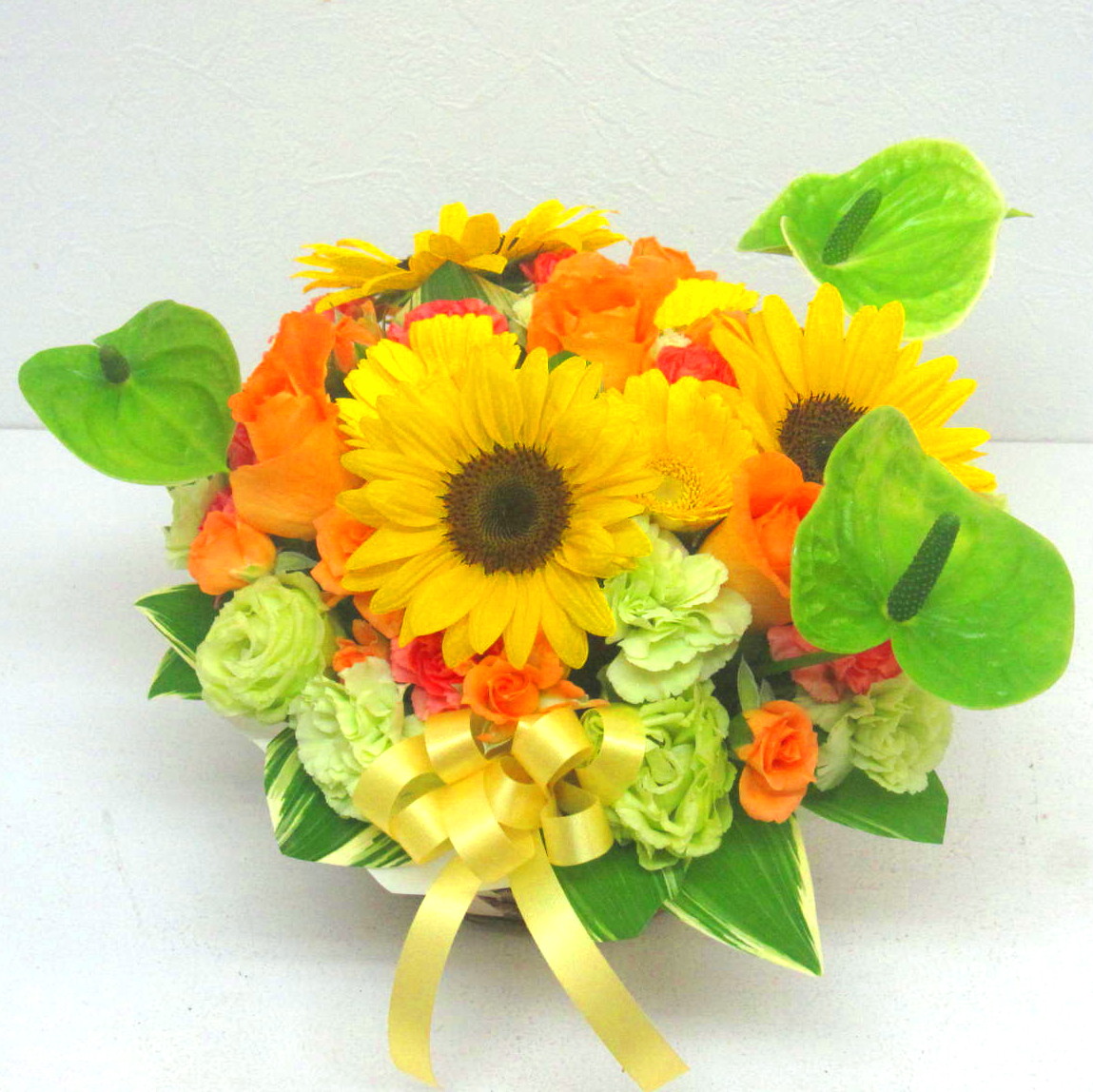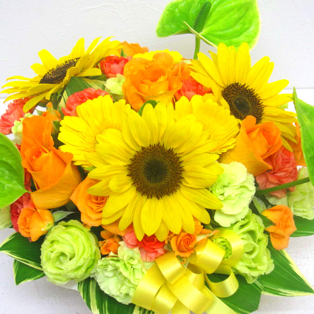 花材: メイン ひまわり、バラ、ガーベラ、カーネーション、アンスリュームなど その他 葉物類など