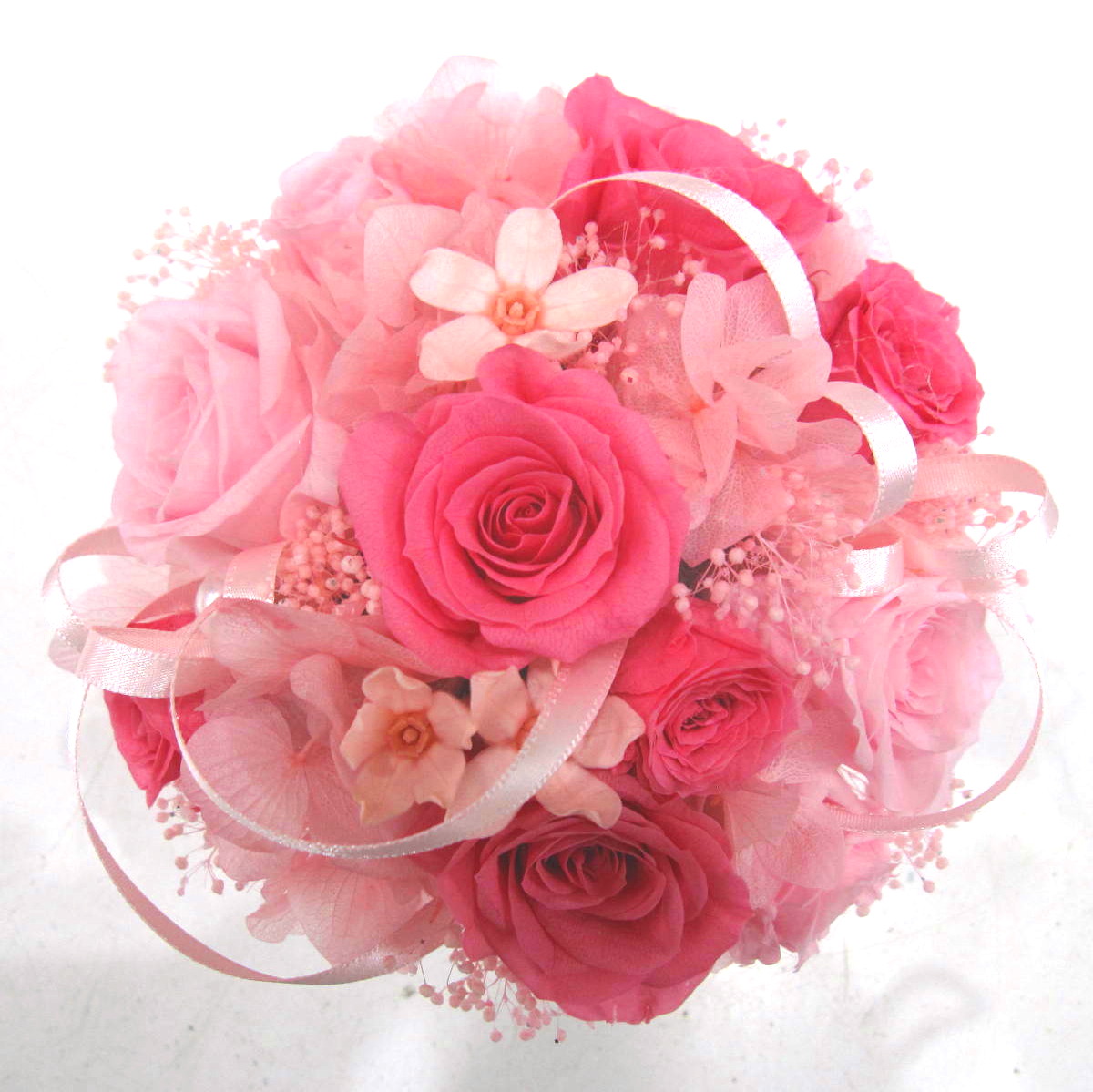 ピンク系の華やかなプリザーブドフラワー【15時迄のご注文で翌日届きます】※こちらの商品についてのご相談、ご質問等ございましたら(メール)または(お電話)にて承ります。