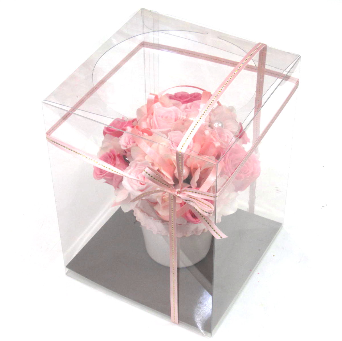 華やかで明るい雰囲気のプリザーブドフラワーです。一言「可愛いです!!しかも花器もすごく素敵です!!」ピンク系のシンプルなスタイルでオールラウンドで製作。どこから見ても綺麗に見えます。きっととびっきりに喜んでいたただけると思います。当店ではお客様の想いを大切に【こころを込めて】お作りいたします。静岡県長泉町から手渡しお届けまたは宅急便で全国にお届けします。是非、さまざまな贈り物に。