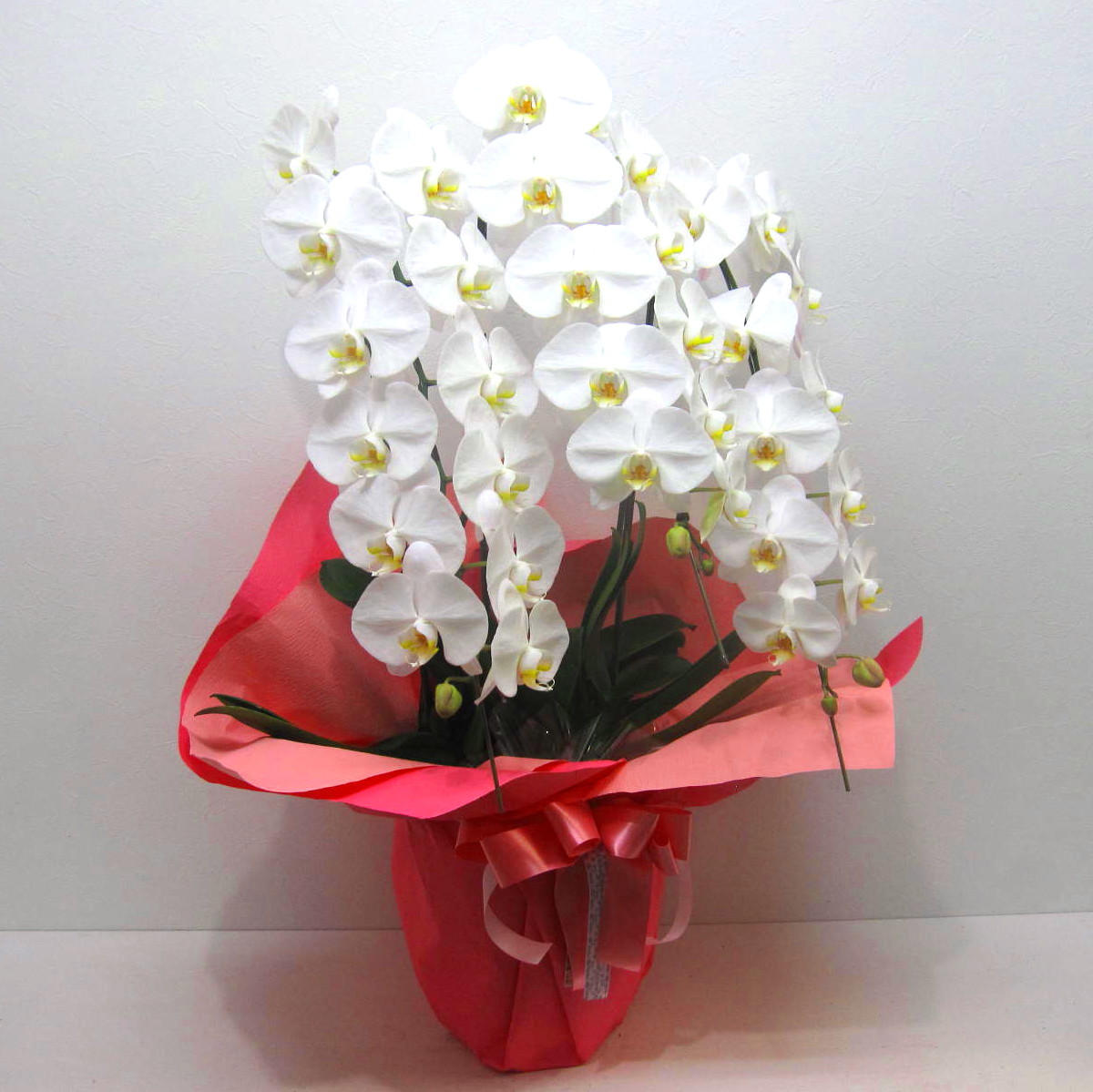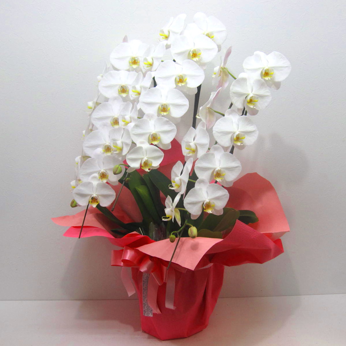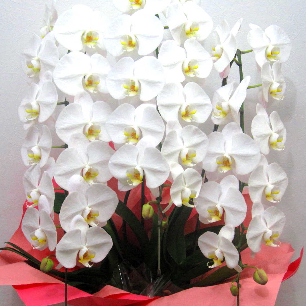 市場で厳選した高品質の生産者が仕立てるボリューム重視の3本立ち大輪胡蝶蘭です。【15時迄のご注文で翌日届きます】【メッセージカードやお名札も(無料)】でお付け致します※こちらの商品についてのご相談、ご質問等ございましたら(メール)または(お電話)にて承ります。
