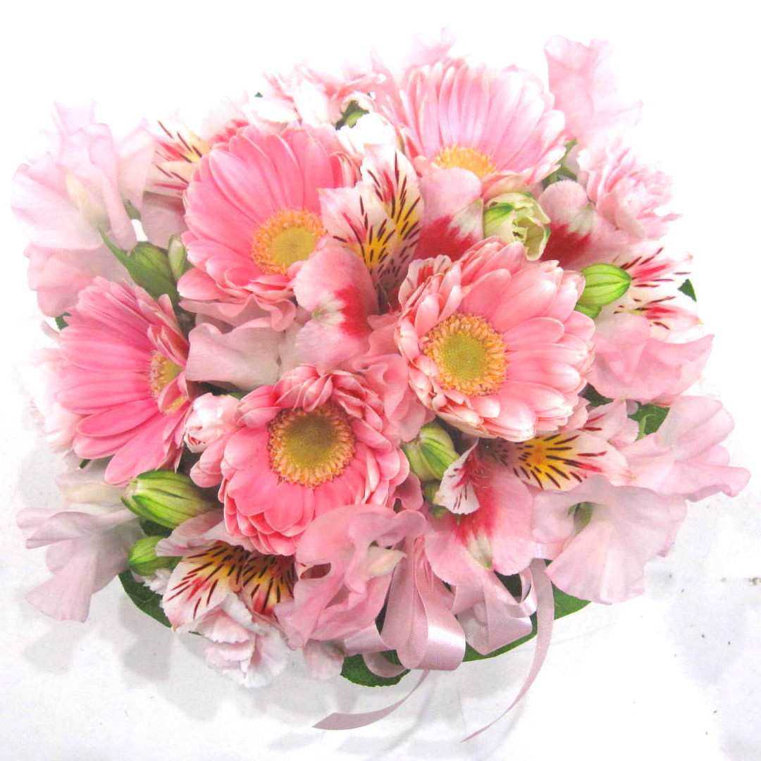 花材: メイン スイートピー、ガーベラ、ミニカーネーション、アルストロメリアなど その他 葉物類など