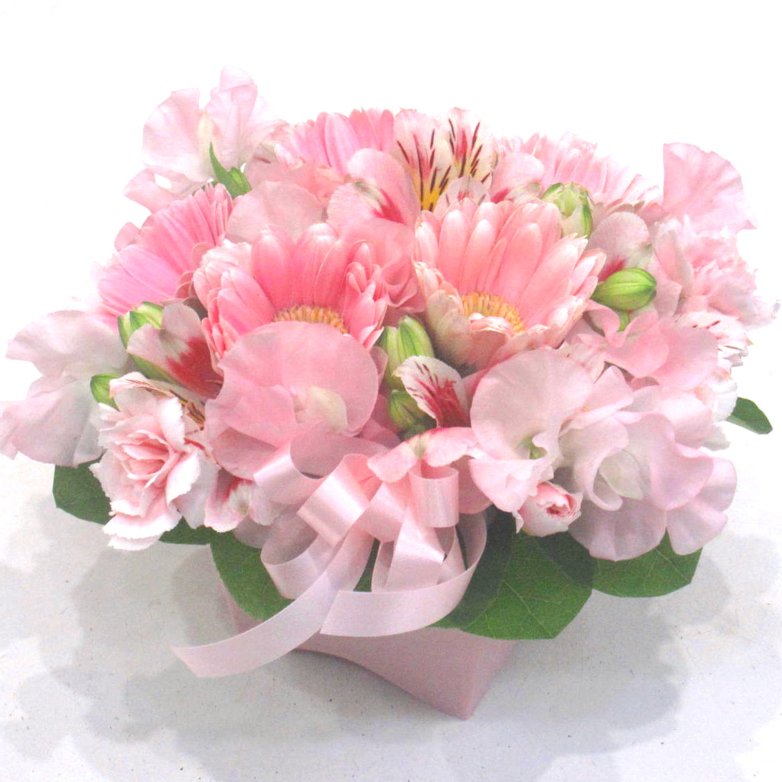 ピンクのスイートピーを主体にした可愛らしいアレンジメントです。春のお誕生日・記念日や御祝などさまざまなギフトにオススメです。きっと喜んで頂けるとおもいますよ。春の甘い香りが、きっと心を癒してくれるでしょう。また、ご利用されたお客様から「大変花持ちが良い」と好評をいただいております。静岡県長泉町から日本全国【真心】込めてお届けいたします。春のさまざまなご用途に贈る贈り物としてオススメです。大切な方へ贈るフラワーギフトやプレゼントなら「花樹園オンラインドットコム」に是非、お任せ下さいませ。