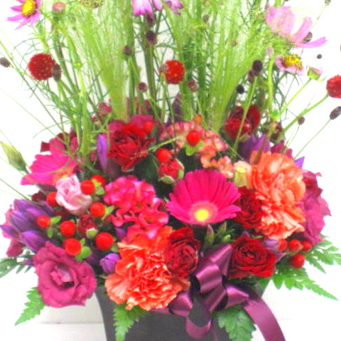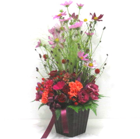秋のお花【コスモス】を入れた豪華で素敵なアレンジメント。【15時迄のご注文で翌日届きます】※こちらの商品についてのご相談、ご質問等ございましたら(メール)または(お電話)にて承ります。