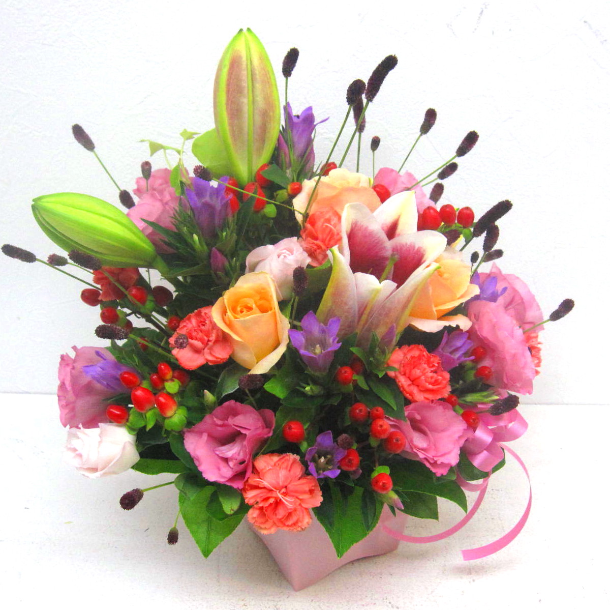 リンドウ、ワレモコウなど秋の花材主体の華やかなアレンジメントです。この季節にピッタリな季節限定アレンジメントです。当店ではお客様の想いを大切に【こころを込めて】お作りいたします。静岡県長泉町から手渡しお届けまたは宅急便で全国にお届けします。是非、さまざまな贈り物に。