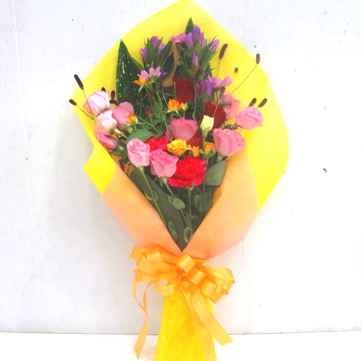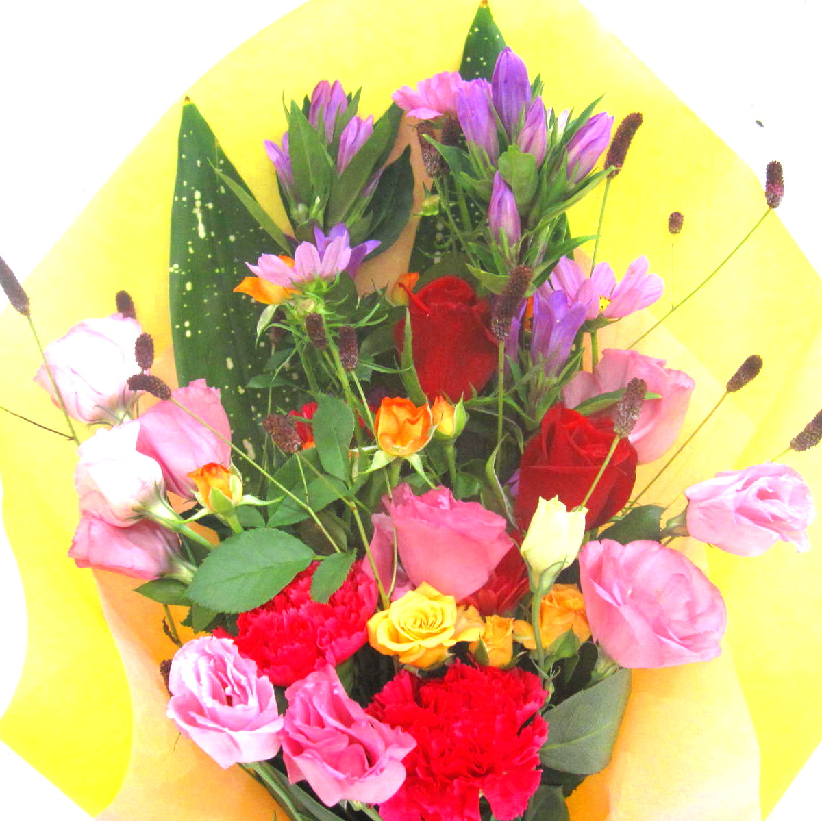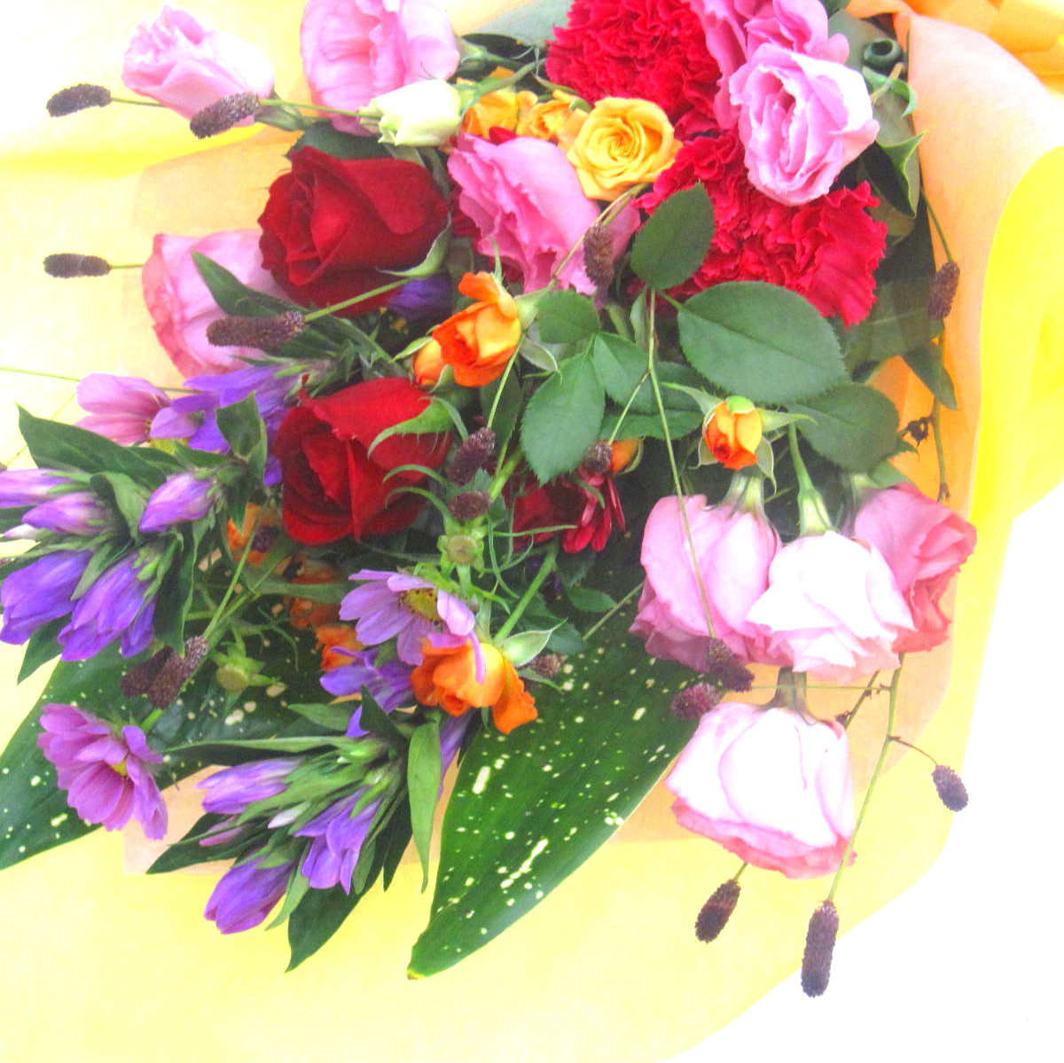 華やかな花束です。季節感のあるお花でお作りします。季節を感じる花束です。当店ではお客様の想いを大切に【こころを込めて】お作りいたします。静岡県長泉町から手渡しお届けまたは宅急便で全国にお届けします。是非、さまざまな贈り物に。
