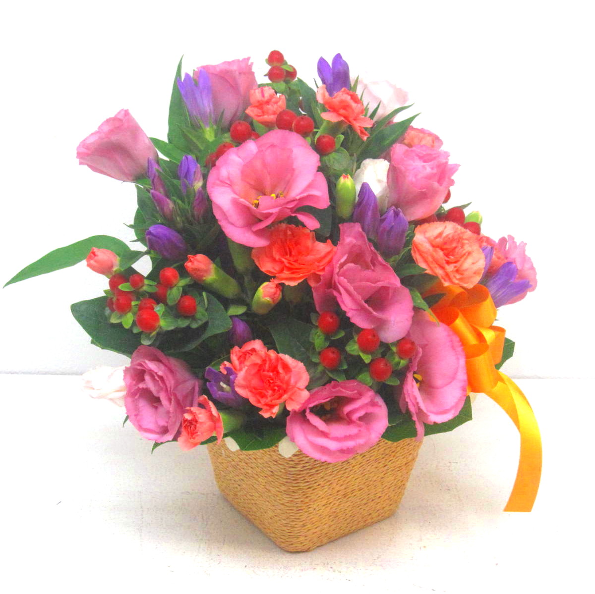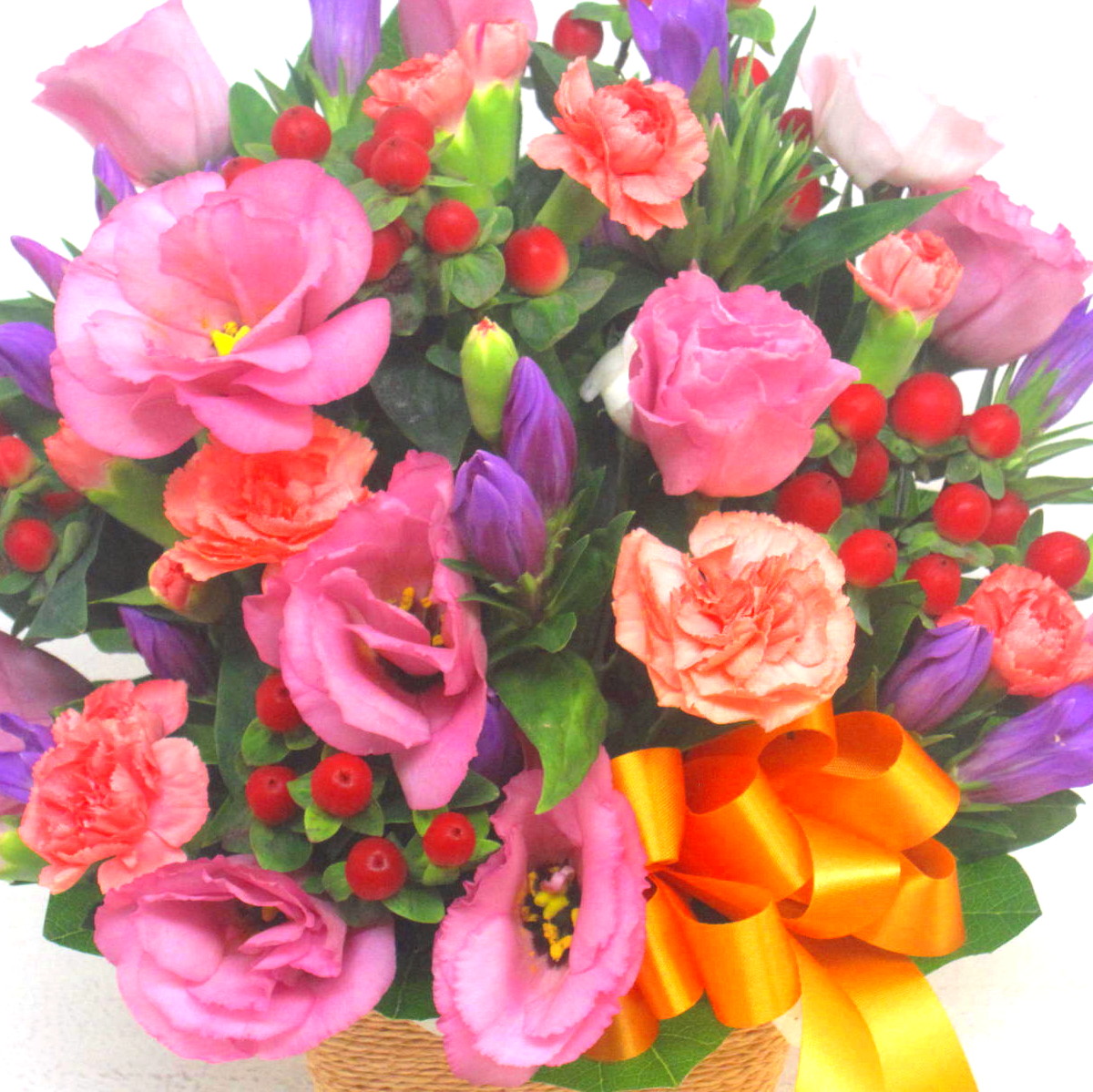 秋の花材を使ったボリューム感があるアレンジメントです。リンドウやトルコギキョウなど季節感のあるお花で【秋】を演出。アクセントのオレンジリボンがお花をより一層引き立てます。秋しかない秋の花、季節を感じるアレンジメントです。当店ではお客様の想いを大切に【こころを込めて】お作りいたします。静岡県長泉町から手渡しお届けまたは宅急便で全国にお届けします。是非、さまざまな贈り物に。