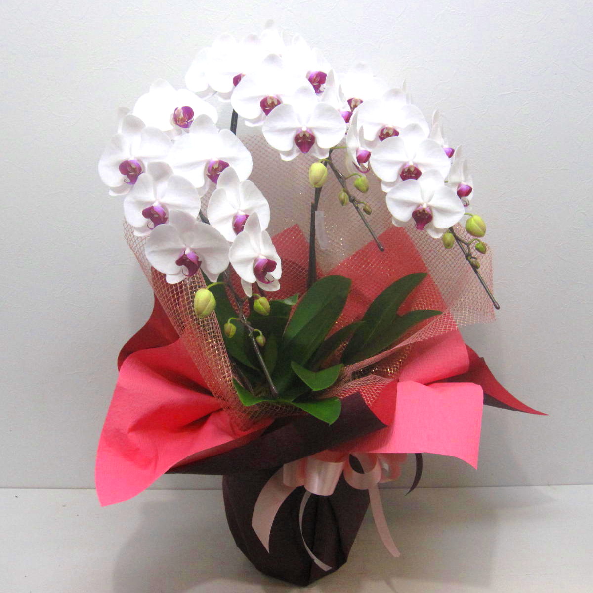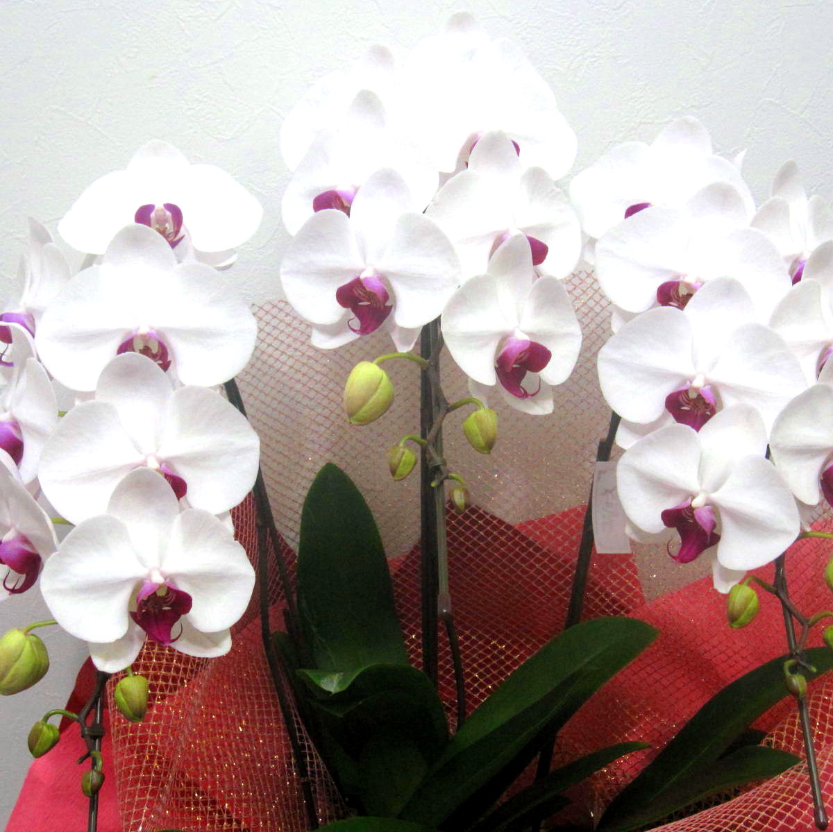 市場であまり出回らないボリューム感のある3本立ち大輪白赤胡蝶蘭です。【15時迄のご注文で翌日届きます】【メッセージカードやお名札も(無料)】でお付け致します※こちらの商品についてのご相談、ご質問等ございましたら(メール)または(お電話)にて承ります。