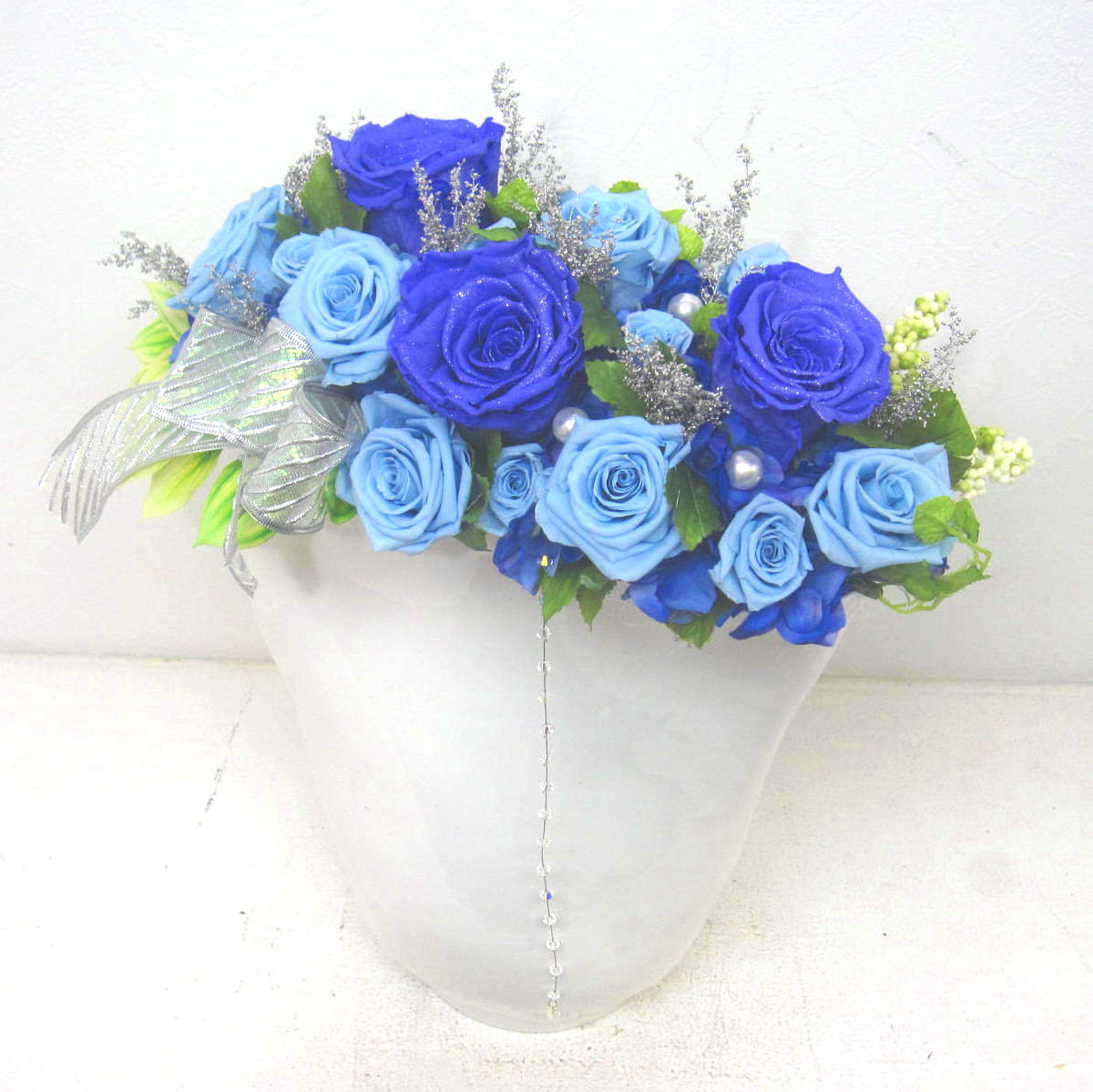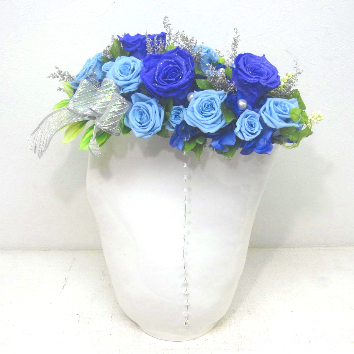 貴賓溢れる最高級のプリザーブドフラワーをお洒落な花器にアレンジしました。天然ダイアモンドラメが贅沢に入ったダイアモンドローズを素敵にアレンジ、下には光り輝くクリスタルガーランドを垂れ下げより一層の高級感溢れるアレンジにしました。どこから見ても綺麗に見えます。お誕生日、開店・開業祝い、展示会などさまざまな贈り物にオススメです。当店ではお客様の想いを大切に【こころを込めて】お作りいたします。静岡県長泉町から手渡しお届けまたは宅急便で全国にお届けします。是非、さまざまな贈り物に。