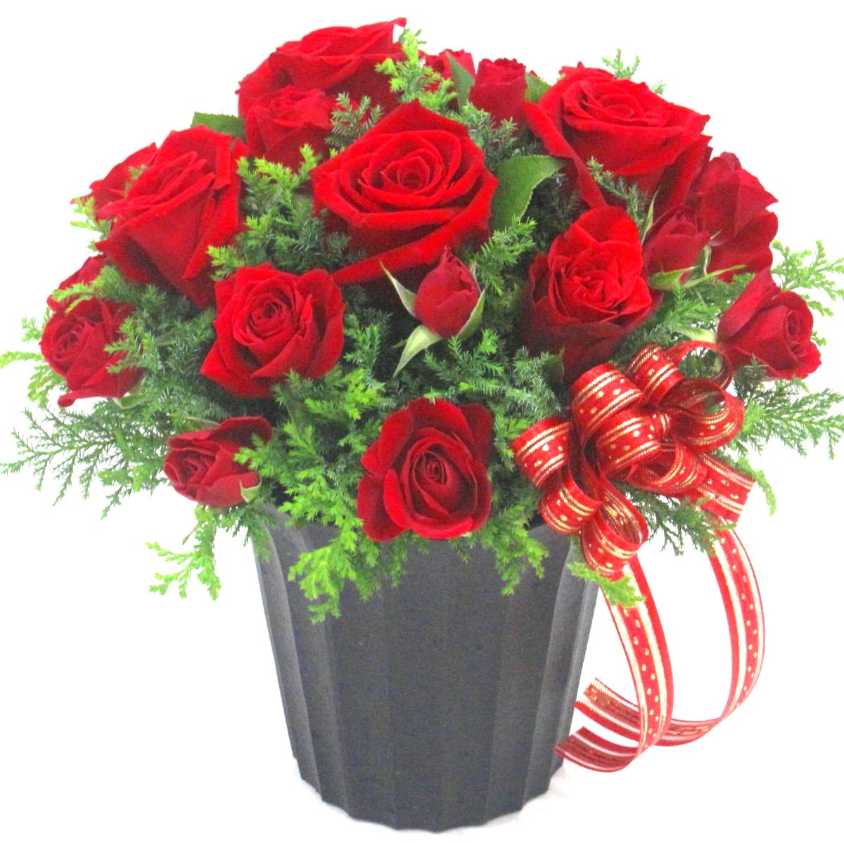 赤いバラとグリーンのみの大人っぽい雰囲気のエレガントで落ち着いた素敵なアレンジメントです。【15時迄のご注文で翌日届きます】※こちらの商品についてのご相談、ご質問等ございましたら(メール)または(お電話)にて承ります。