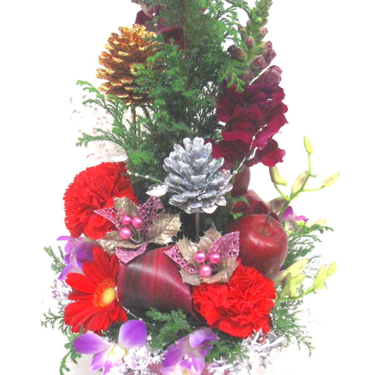 まるでクリスマスツリーのような素敵で大人気のアレンジメント。季節限定商品です。【15時迄のご注文で翌日届きます】※こちらの商品についてのご相談、ご質問等ございましたら(メール)または(お電話)にて承ります。
