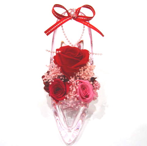 当店プリザーブド部門8年連続人気【NO.1】【とても個性的でお洒落なハイヒールにレッド&ピンク系のお花をアレンジしました。まるでシンデレラの靴みたいでとっても素敵です。】当店ではお客様の想いを大切に【こころを込めて】お作りいたします。静岡県長泉町から手渡しお届けまたは宅急便で全国にお届けします。是非、さまざまな贈り物に。