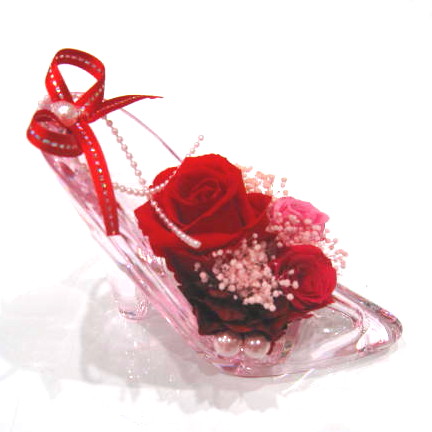 アクリル製のハイヒールでとってもセンスの良い上品なプリザーブドフラワーです。【15時迄のご注文で翌日届きます】※こちらの商品についてのご相談、ご質問等ございましたら(メール)または(お電話)にて承ります。