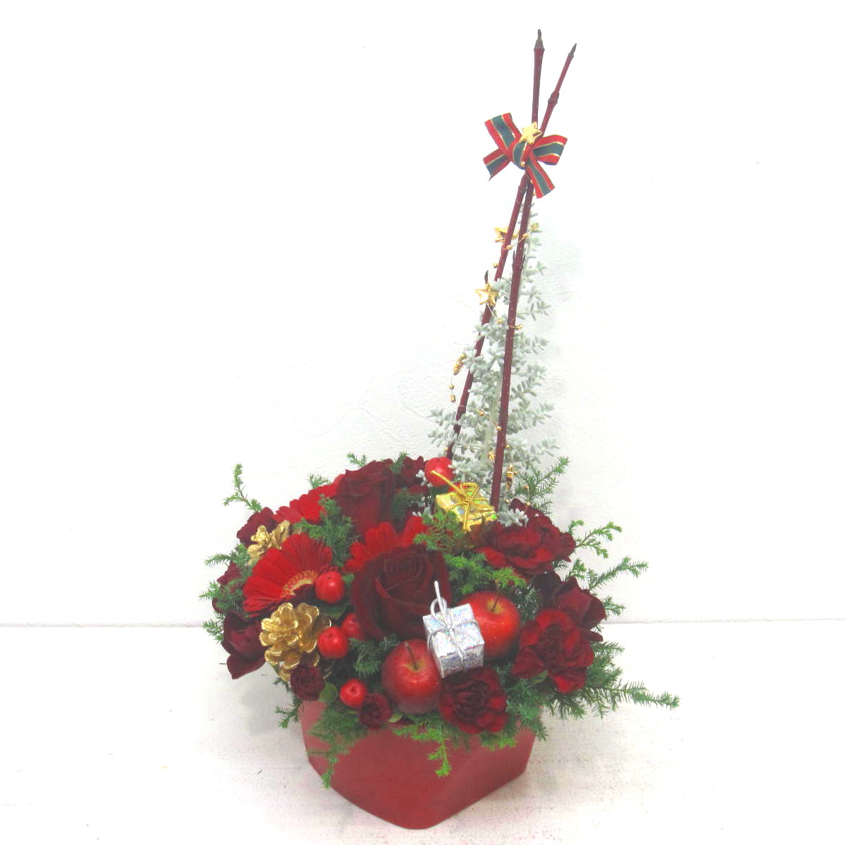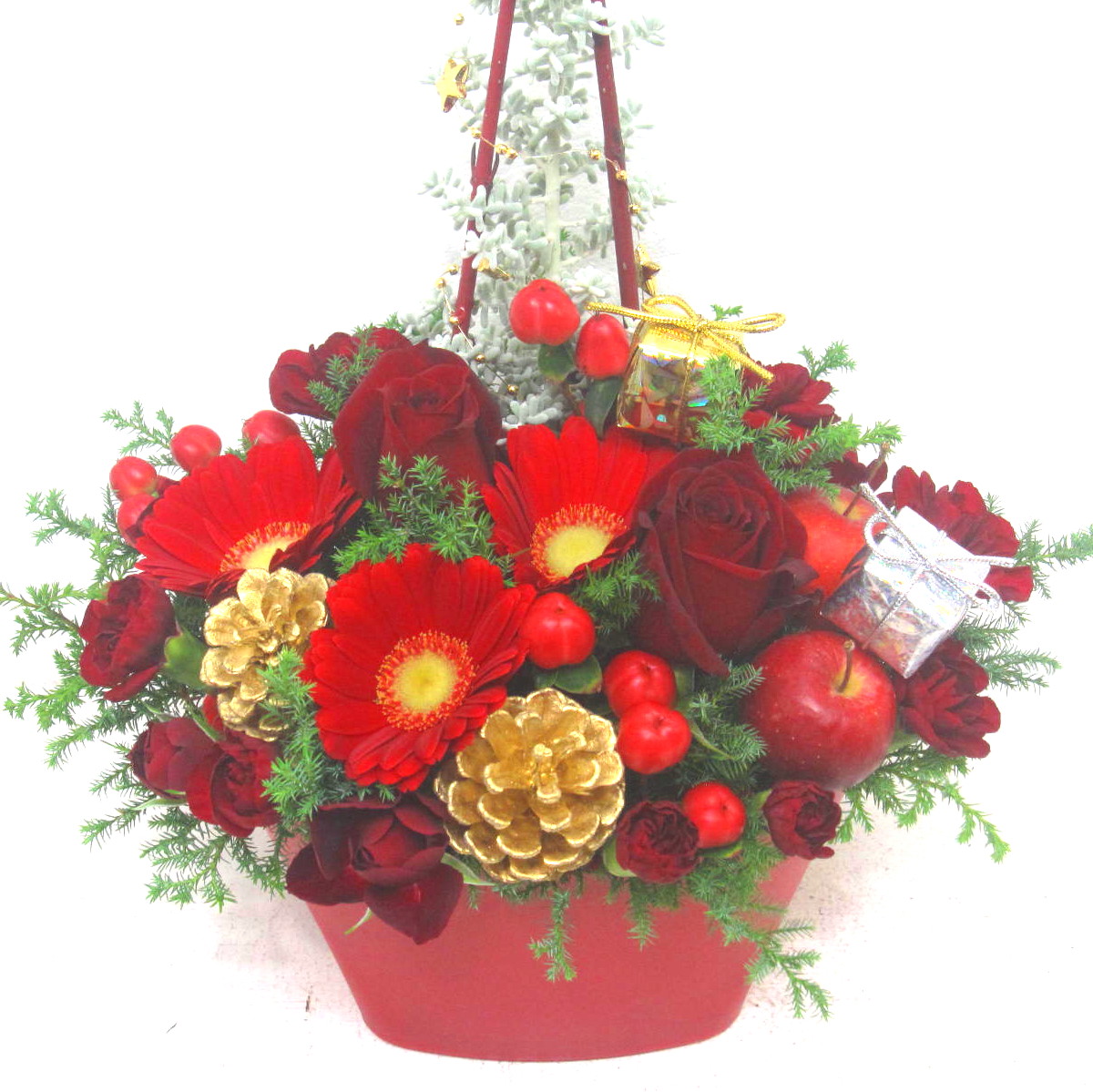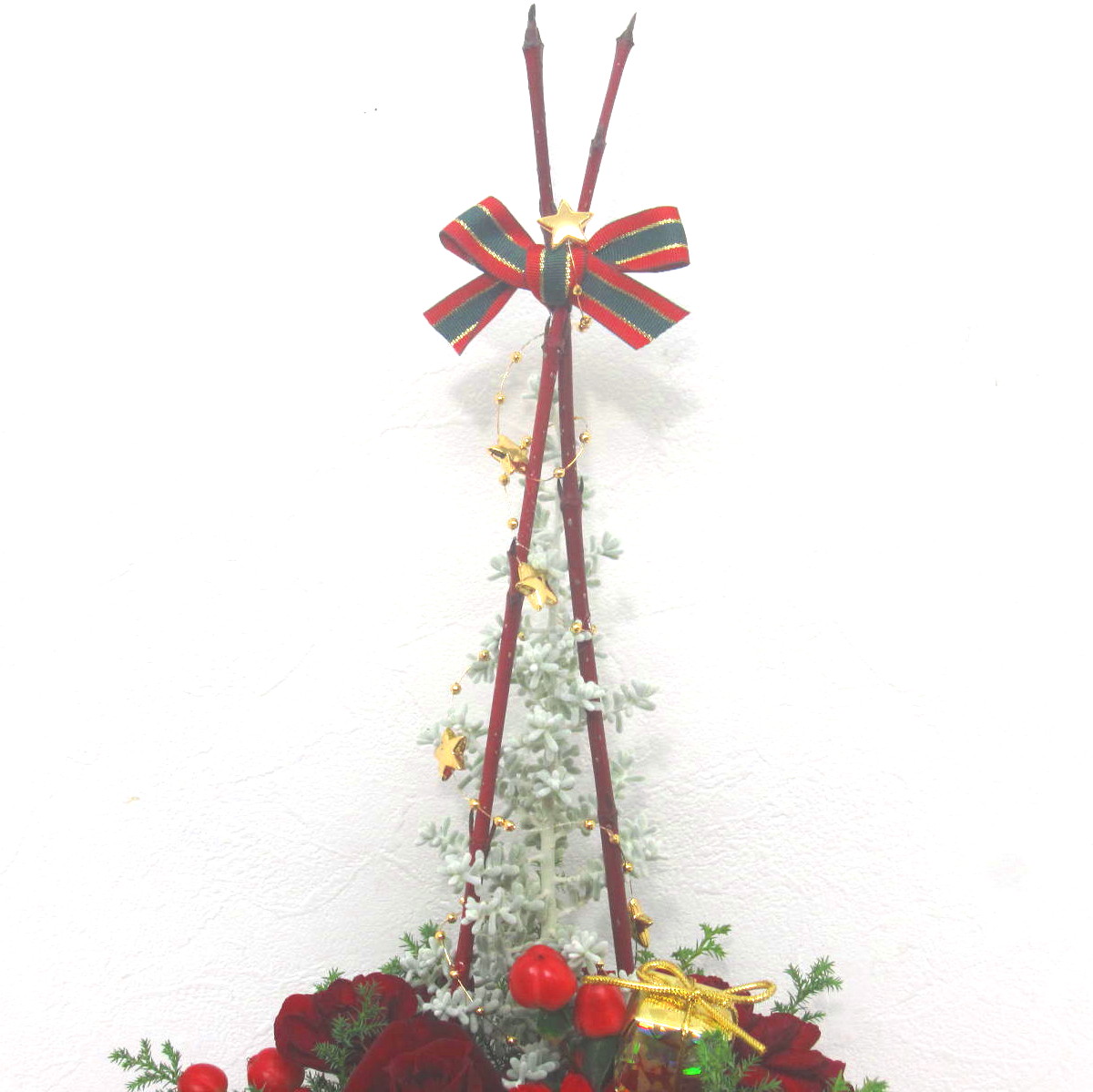 クリスマスプレゼントにおすすめのツリー型アレンジメントです。季節限定商品です。【15時迄のご注文で翌日届きます】※こちらの商品についてのご相談、ご質問等ございましたら(メール)または(お電話)にて承ります。