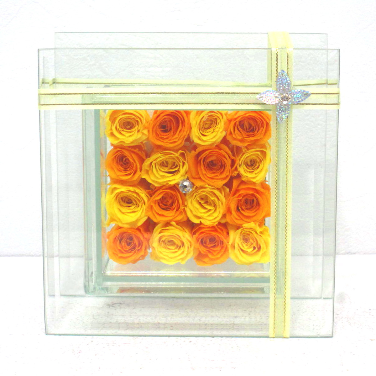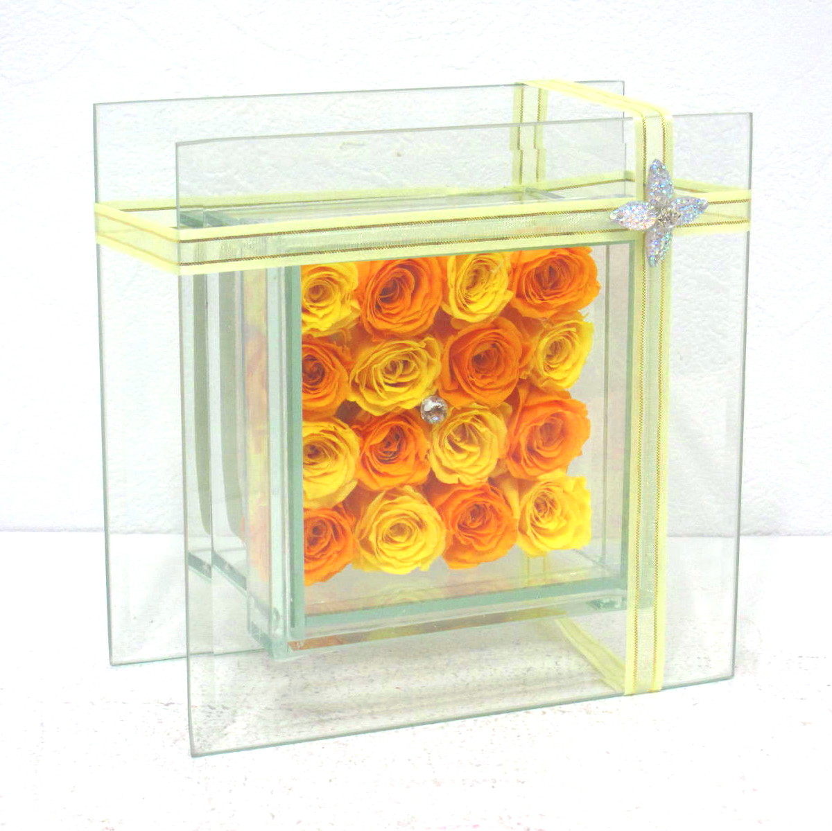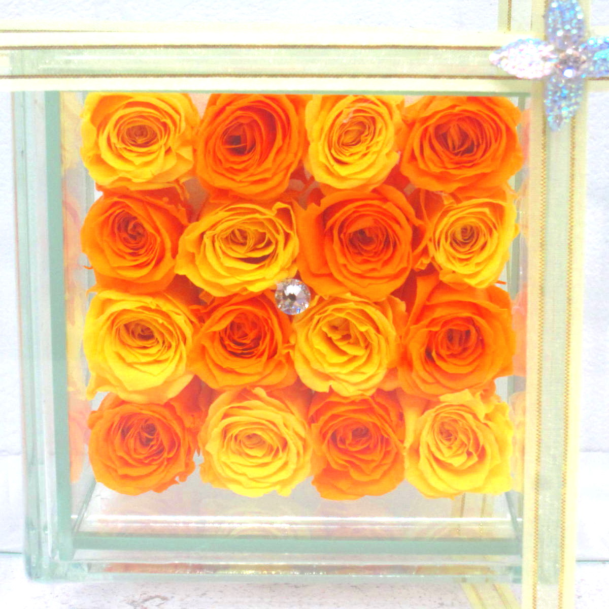 とても素敵な透明感のプリザーブドフラワー。スワロフスキーがガラスフレームと黄色&オレンジ系のプリザーブドローズを引き立てます。大人気の為、数に限りがございます。ご注文はお早めに。【15時迄のご注文で翌日届きます】※こちらの商品についてのご相談、ご質問等ございましたら(メール)または(お電話)にて承ります。