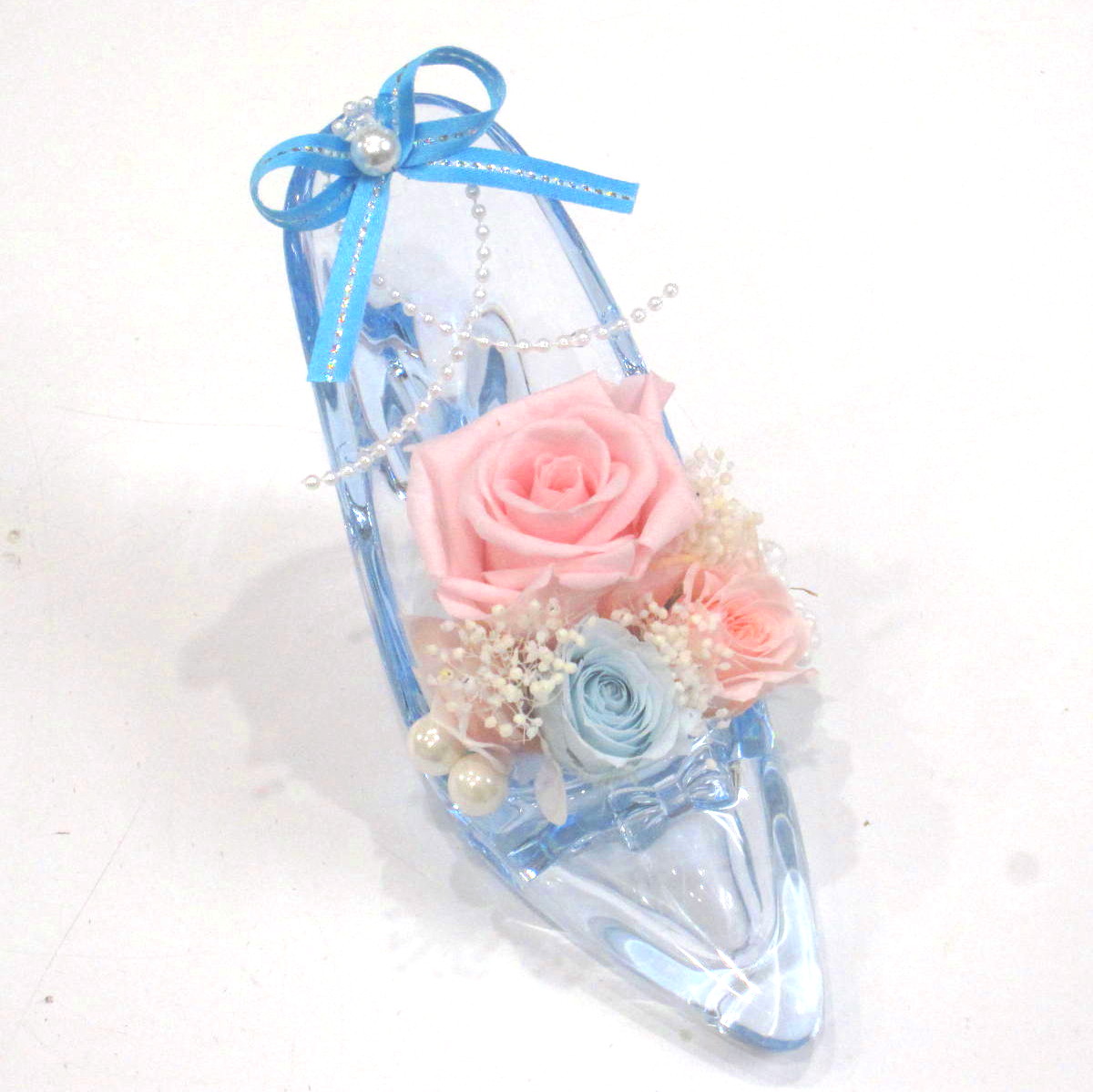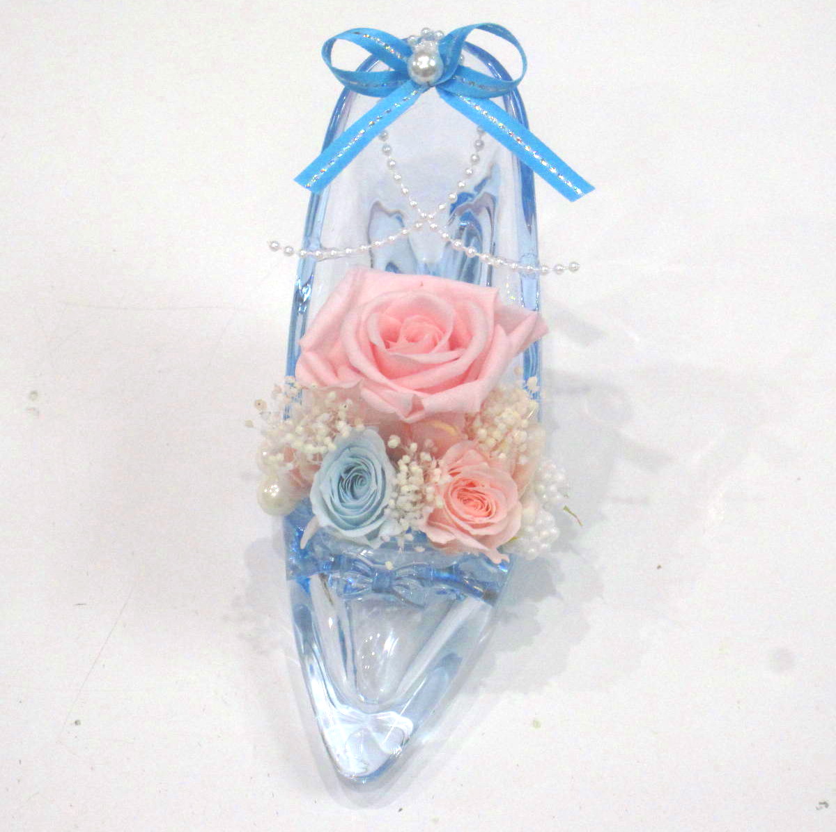 当店プリザーブド部門8年連続人気【NO.1】【とても個性的でお洒落なハイヒールにピンク&ブルー系のお花をアレンジしました。まるでシンデレラの靴みたいでとっても素敵です。】当店ではお客様の想いを大切に【こころを込めて】お作りいたします。静岡県長泉町から手渡しお届けまたは宅急便で全国にお届けします。是非、さまざまな贈り物に。