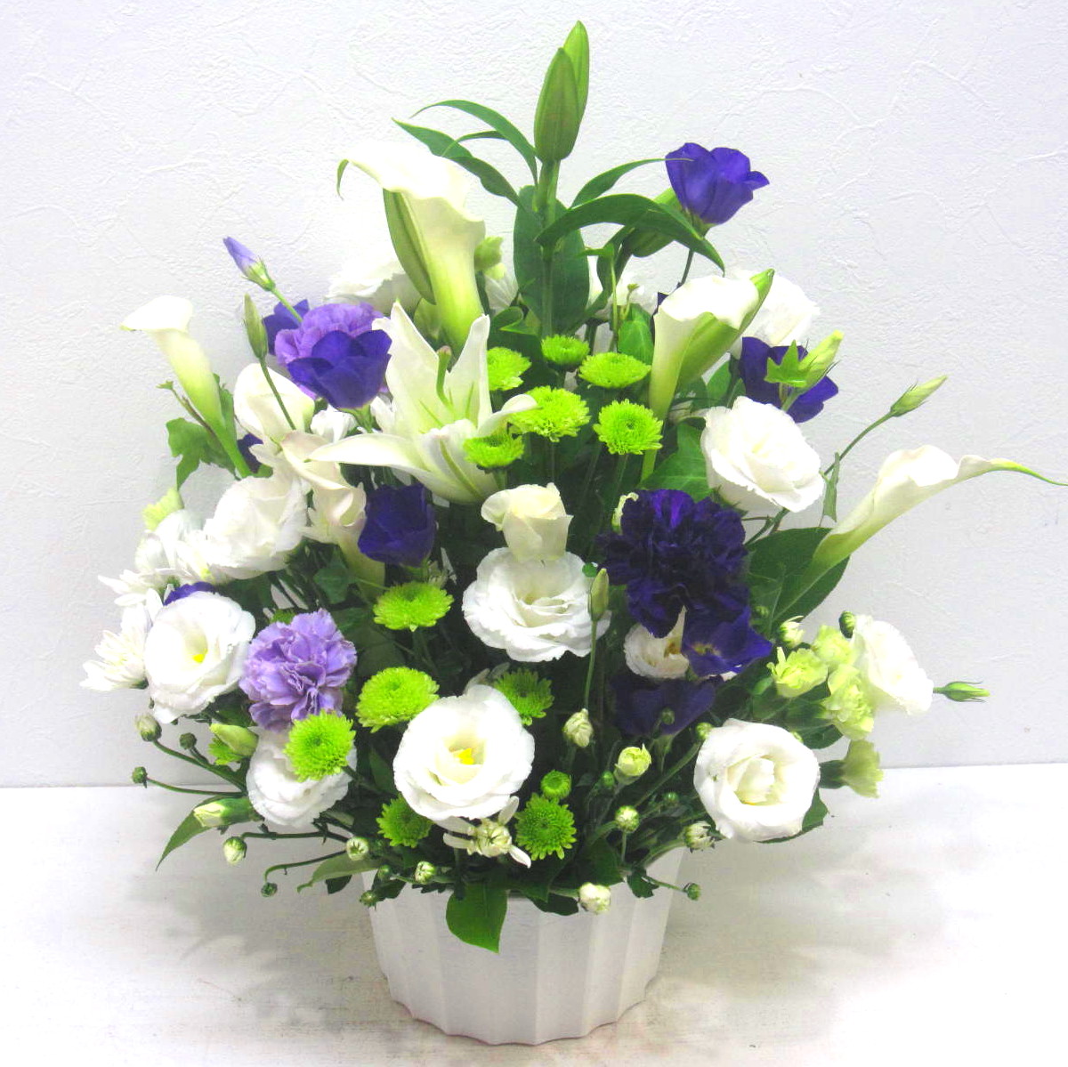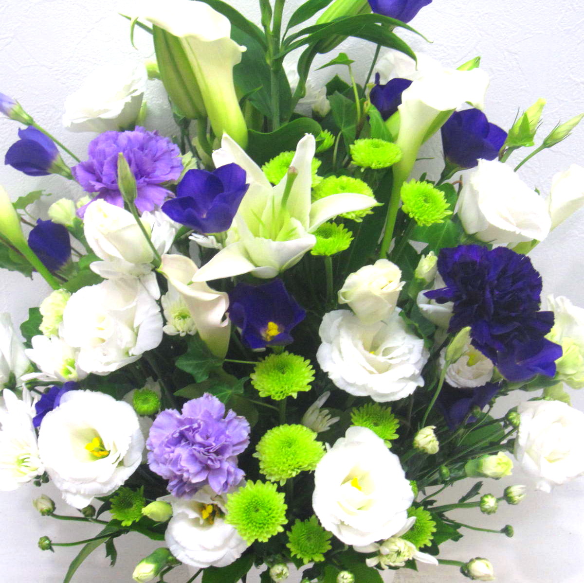 花材: メイン ユリ、トルコギキョウ、カーネーション、カラーなど その他 葉物類など