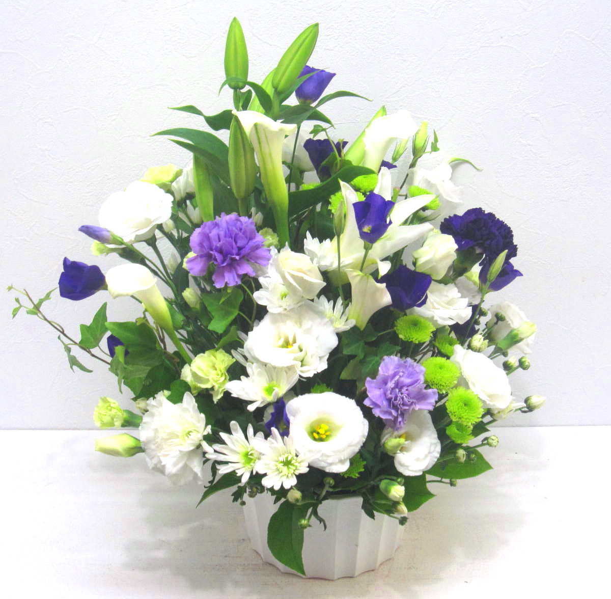 ボリューム感のある控えめな色合いのお悔やみアレンジメントです。上品な雰囲気の故人を偲ぶ贈り物に最適です。目を閉じて心の中にいる故人への想いをそっと呼び起こします。当店では、お客様のその想いをしっかりと受け止め、心を込めて制作致します。静岡県から全国へお届けします。故人を偲ぶ色々なシーンで是非、ご利用下さい。