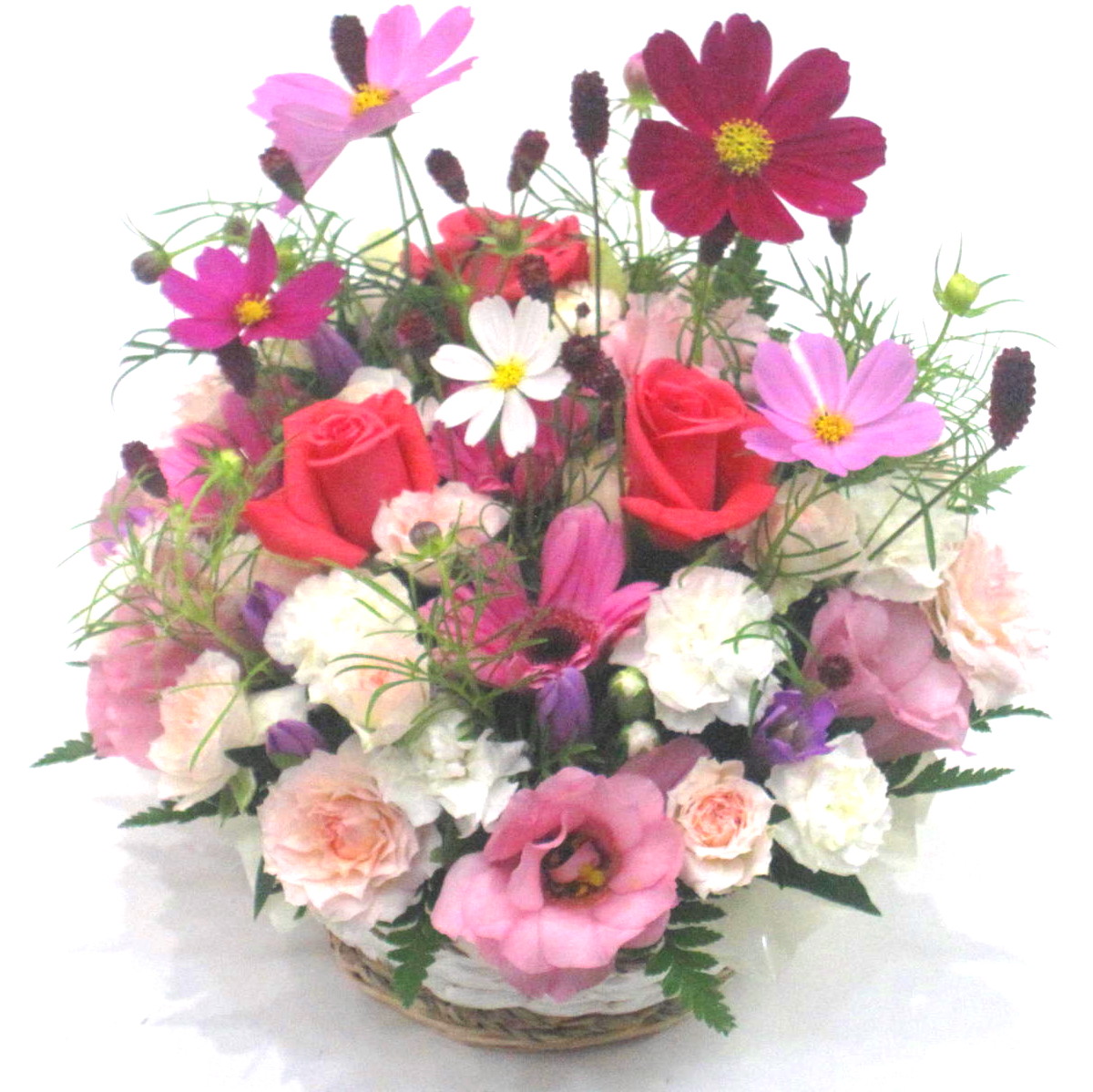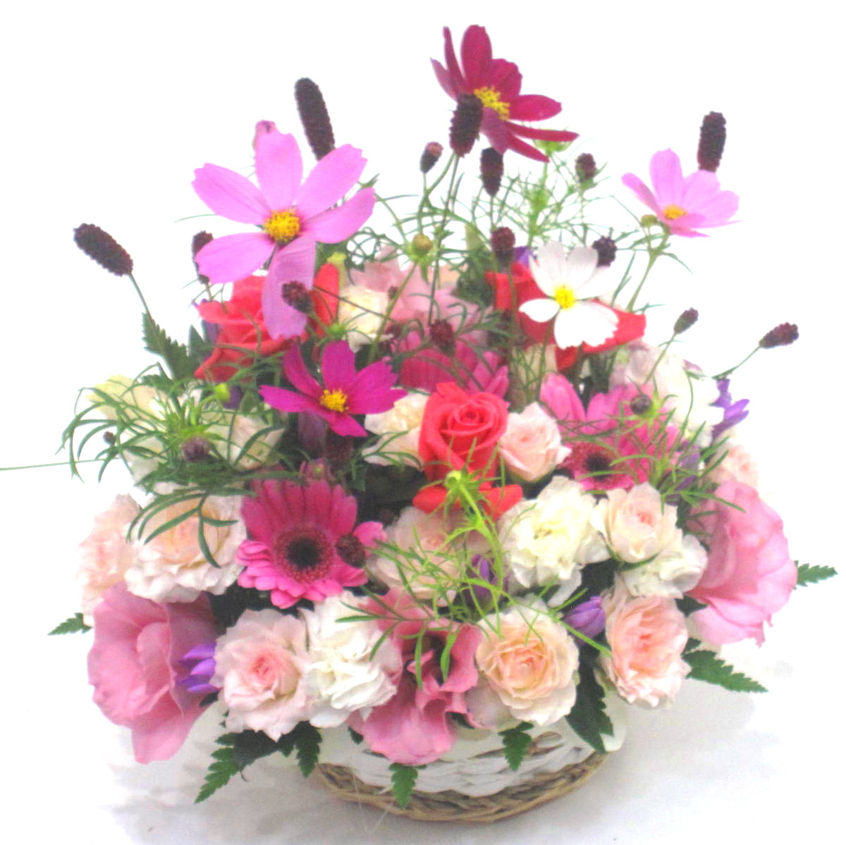 秋の七草「コスモス」「リンドウ」「ワレモコウ」を入れたピンクの濃淡が綺麗なアレンジメントです。華やかでボリューム感もあり秋のさまざまなお祝いにオススメです。また、ご利用されたお客様から「大変花持ちが良い」と好評をいただいております。静岡県長泉町から日本全国【真心】込めてお届けいたします。さまざまなご用途に贈る贈り物としてオススメです。大切な方へ贈るフラワーギフトやプレゼントなら「花樹園オンラインドットコム」に是非、お任せ下さいませ。
