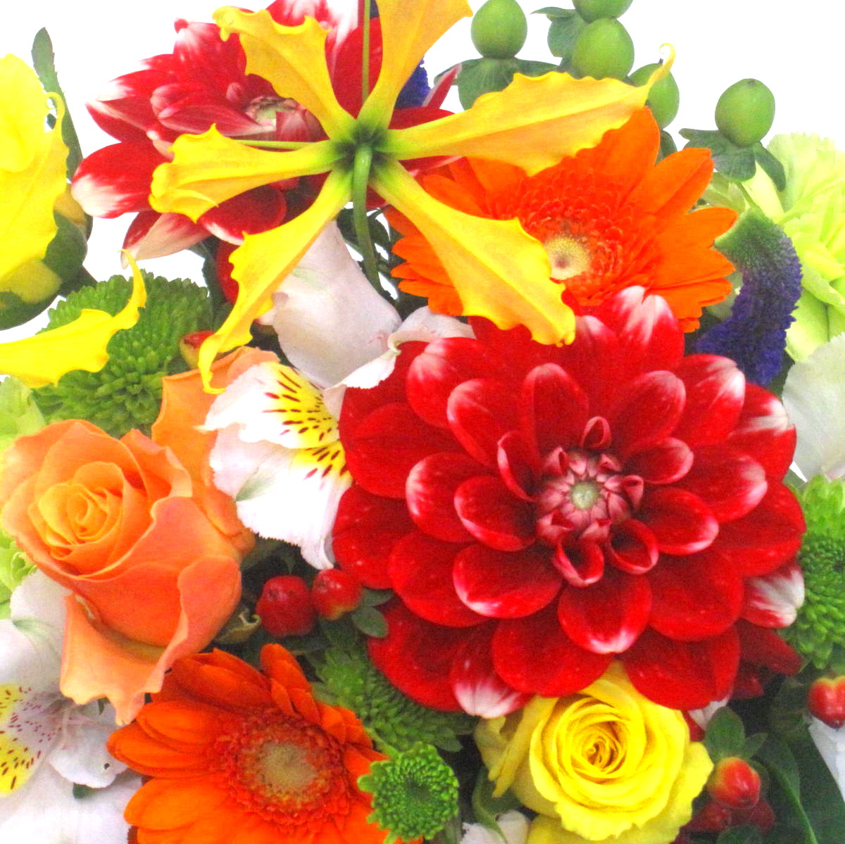 花材: メイン バラ、ガーベラ、ダリア、季節のお花など その他 実物類、葉物類など