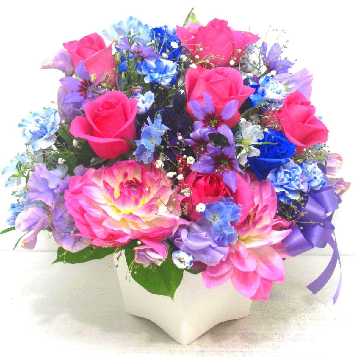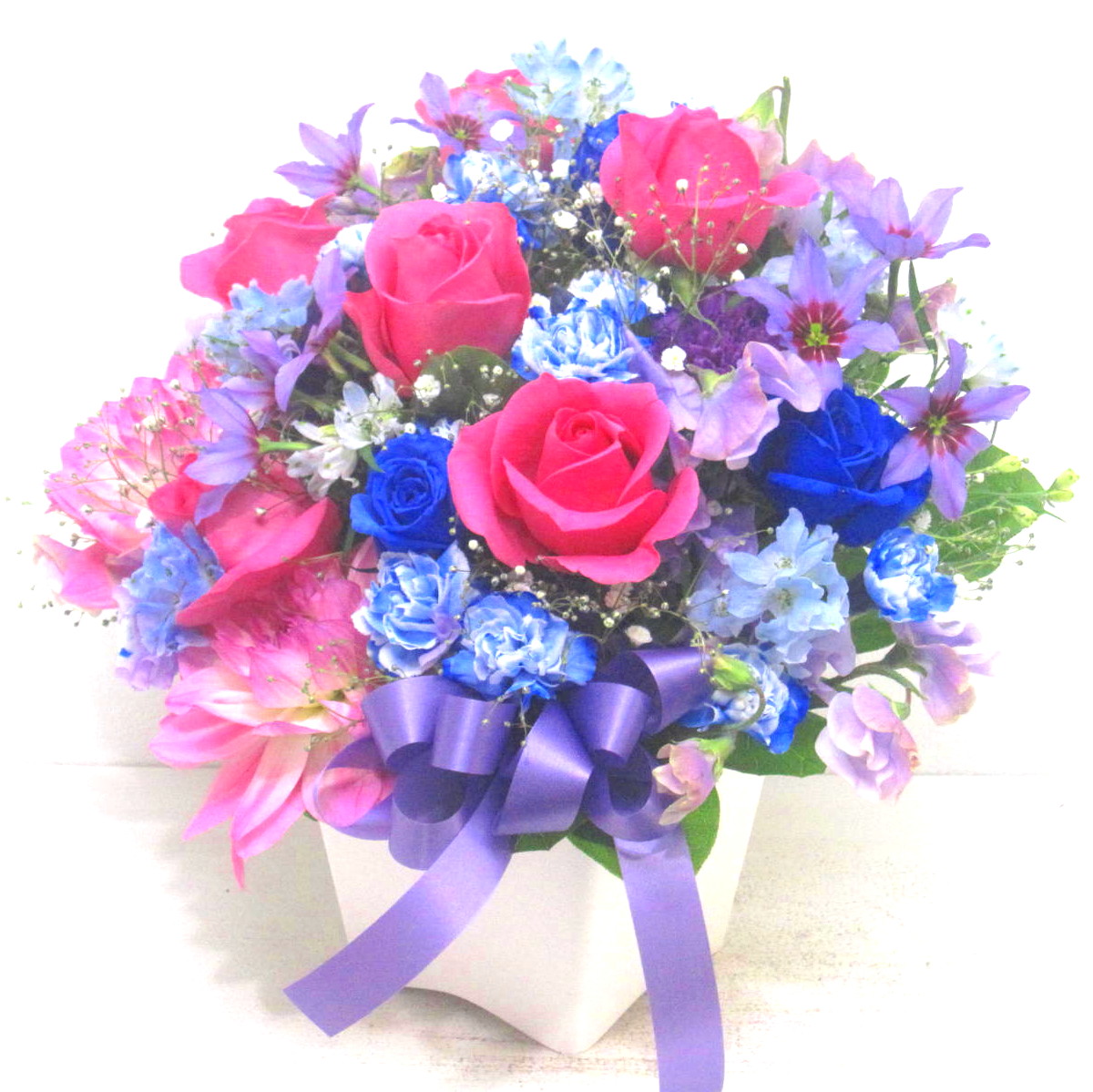 春らしい明るいピンク&パープル系の上品でボリューム感のあるアレンジメントです。宮崎県産の「スイートピー」を使用、人気の高い「バラ」や「ミニカーネーション」なども入れて春らしい上品な雰囲気が漂い、華やかな素敵な仕上がりとなっております。春の甘い香りが、きっと心を癒してくれるでしょう。また、ご利用されたお客様から「大変花持ちが良い」と好評をいただいております。静岡県長泉町から日本全国【真心】込めてお届けいたします。春のさまざまなご用途に贈る贈り物としてオススメです。大切な方へ贈るフラワーギフトやプレゼントなら「花樹園オンラインドットコム」に是非、お任せ下さいませ。