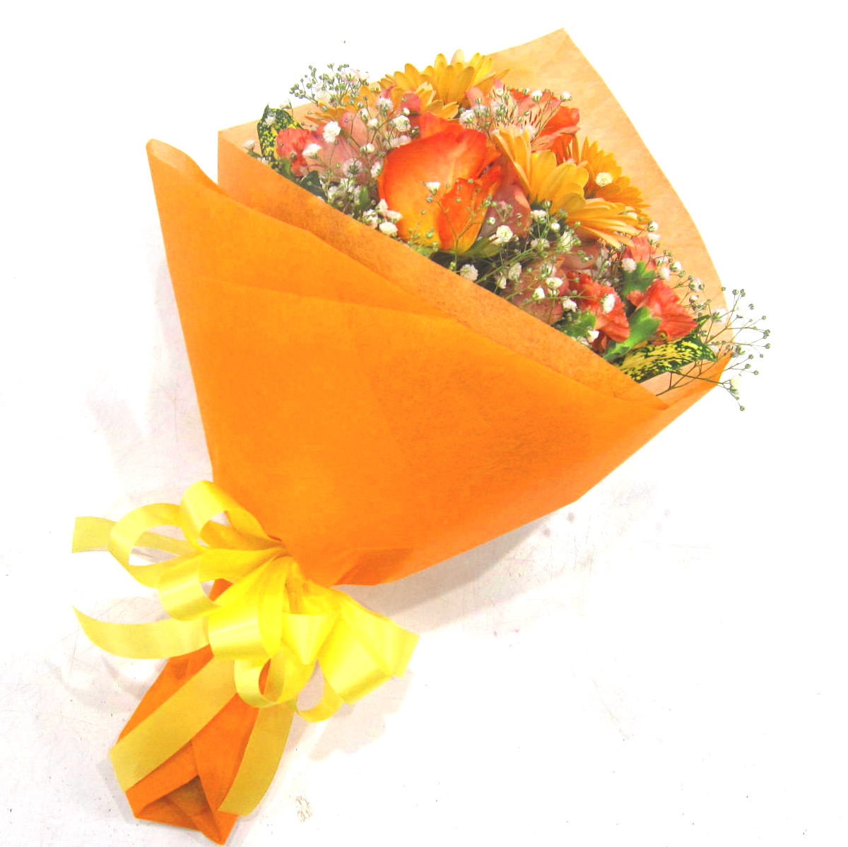 人気のお花を中心にした元気が出る色合いの可愛いらしい素敵な花束です。存在感のある「バラ」や「ガーベラ」、ボリューム感を演出してくれる「かすみ草」や「ミニカーネーション」と一緒にあわせて上品にお作りします。また、持ちの良いお花を中心に使っておりますので花持ちも良いでしょう。ご購入されたお客様から高い評価を頂いております。静岡県長泉町から日本全国【真心】込めてお届けいたします。さまざまなご用途に贈る贈り物としてオススメです。大切な方へ贈るフラワーギフトやプレゼントなら「花樹園オンラインドットコム」に是非、お任せ下さいませ。