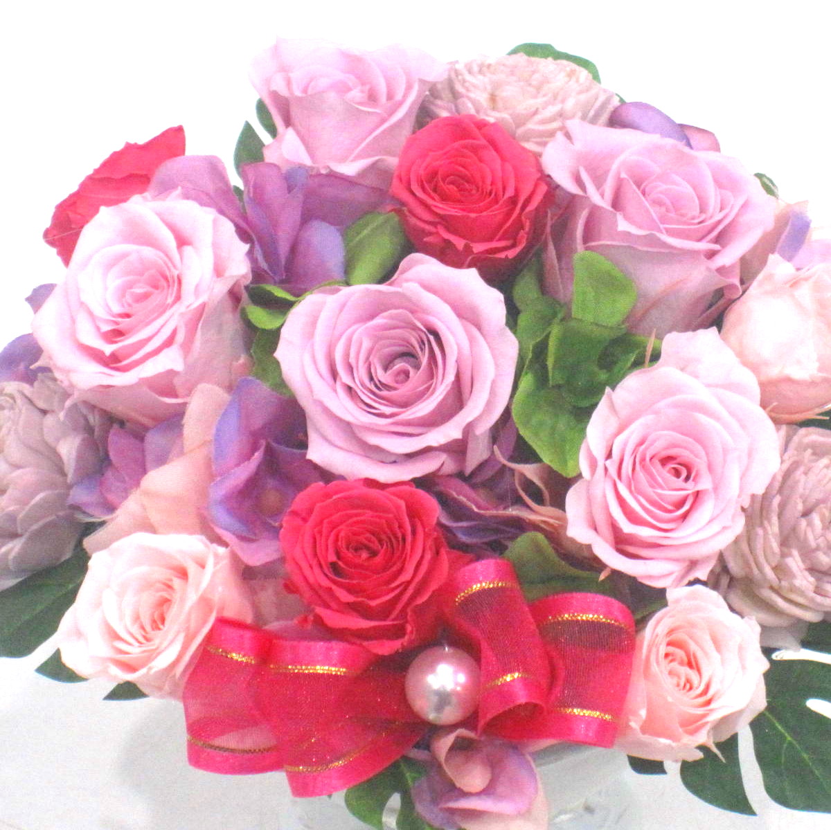 優しい雰囲気のボリューム感のあるプリザーブドフラワーです。上品なピンク&パープルの色合いが大切な日を優しく彩ります。【15時迄のご注文で翌日届きます】※こちらの商品についてのご相談、ご質問等ございましたら(メール)または(お電話)にて承ります。
