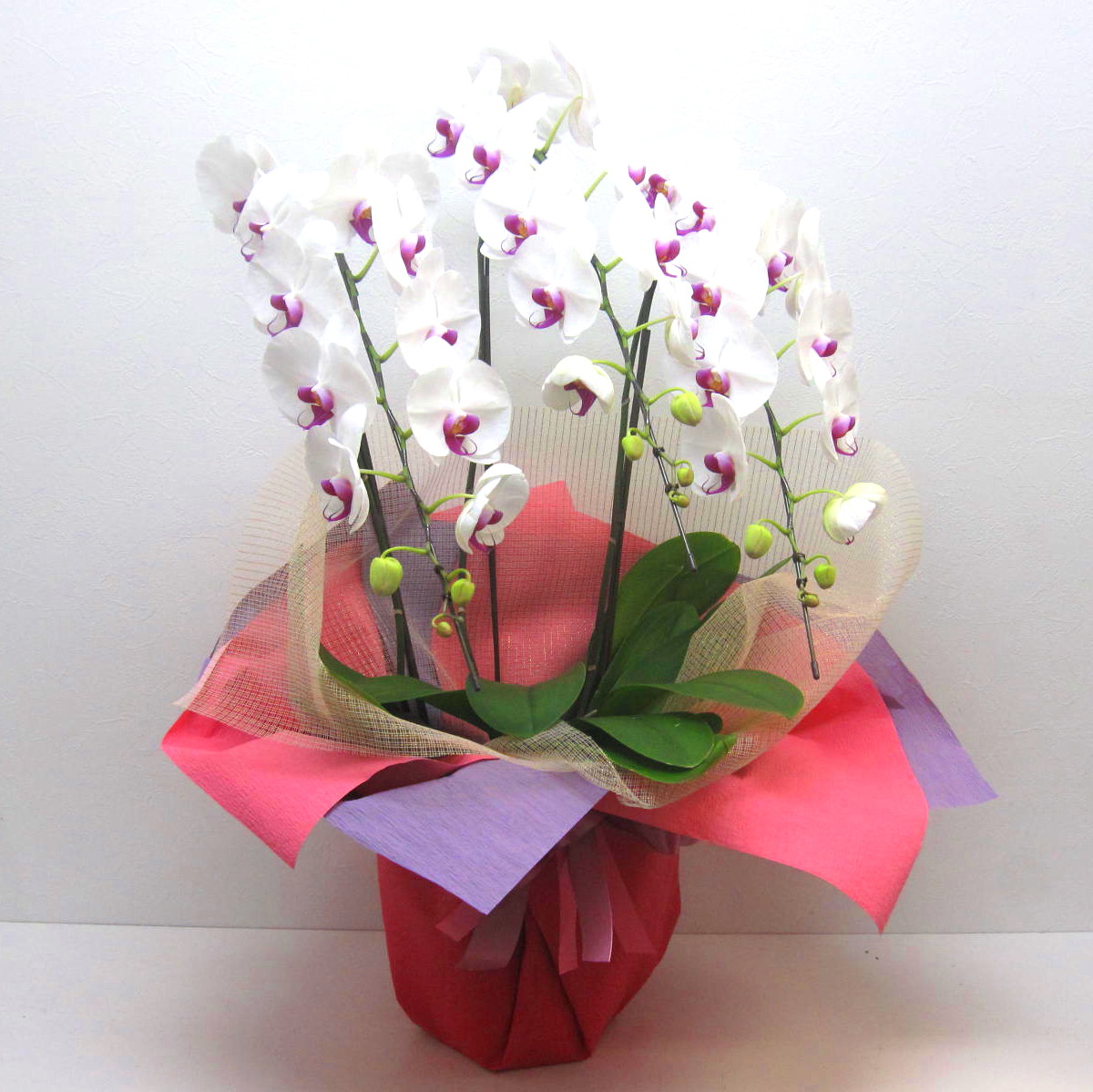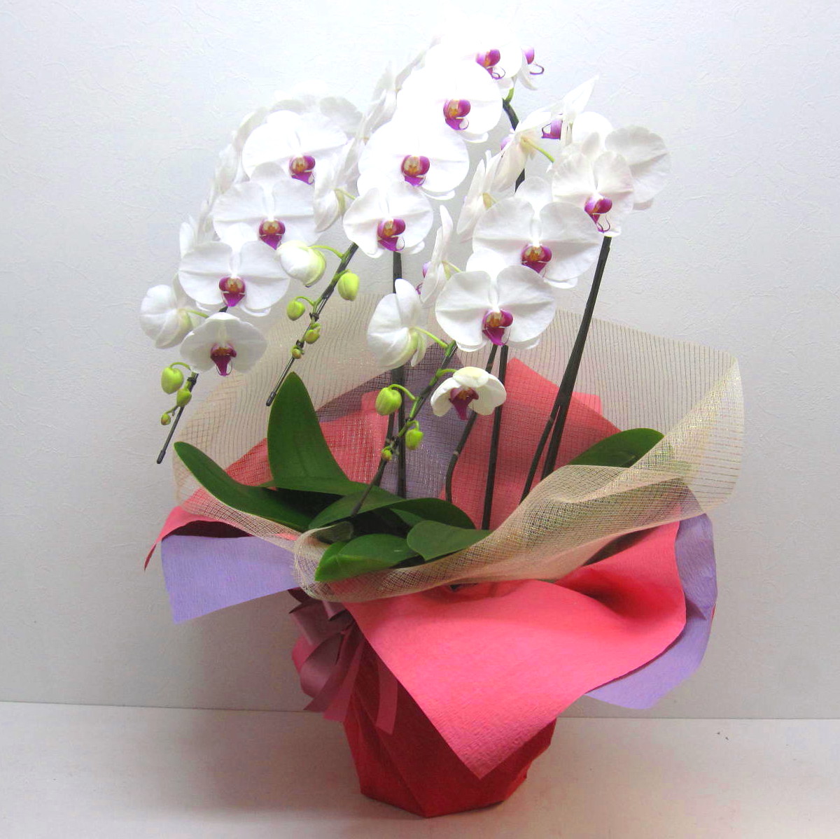 花材: 胡蝶蘭【大輪白赤】