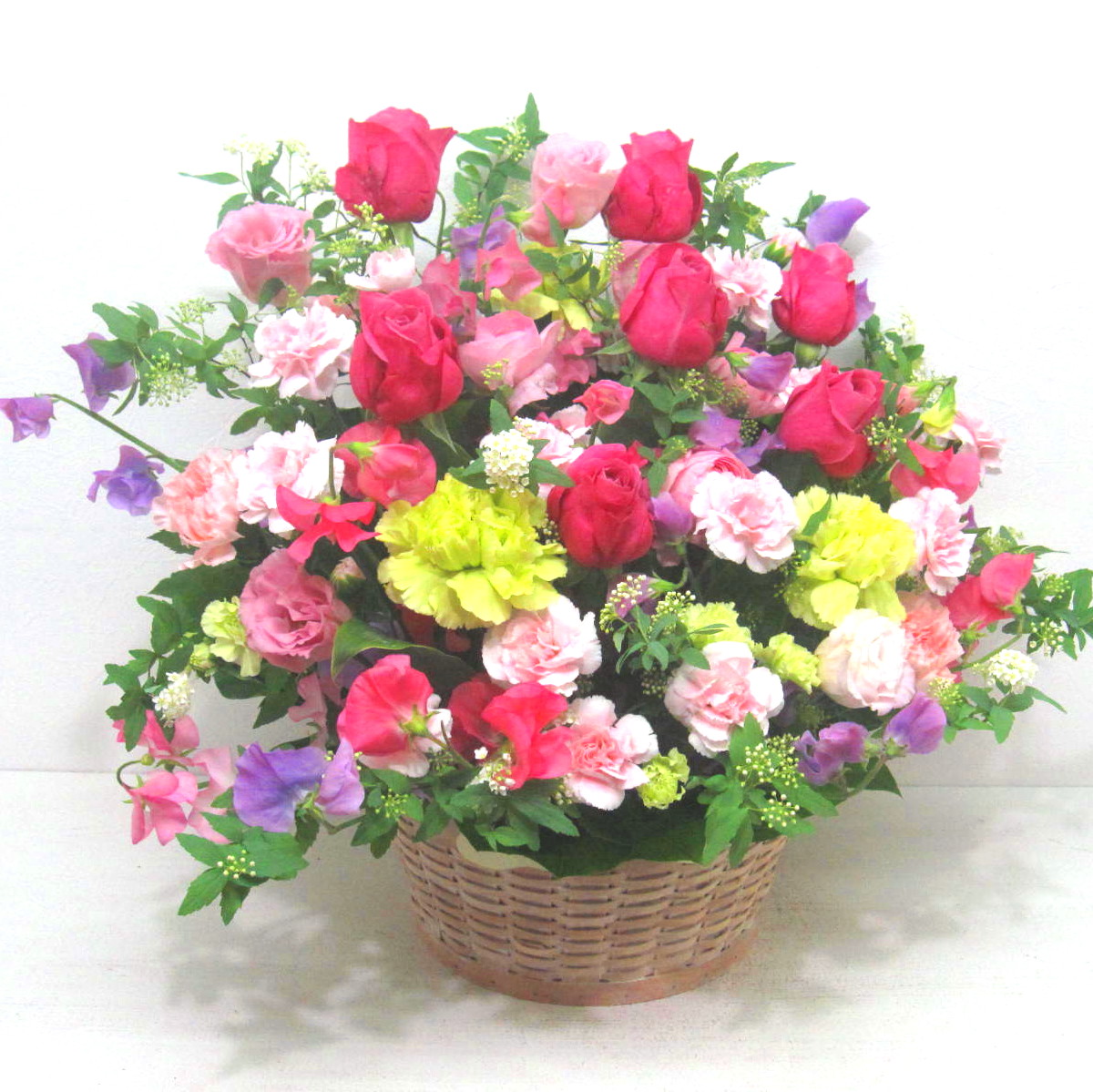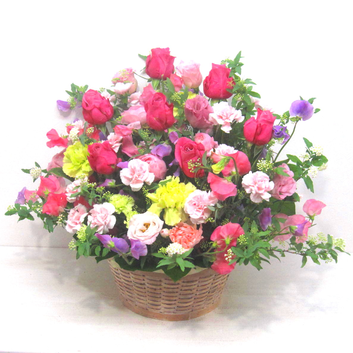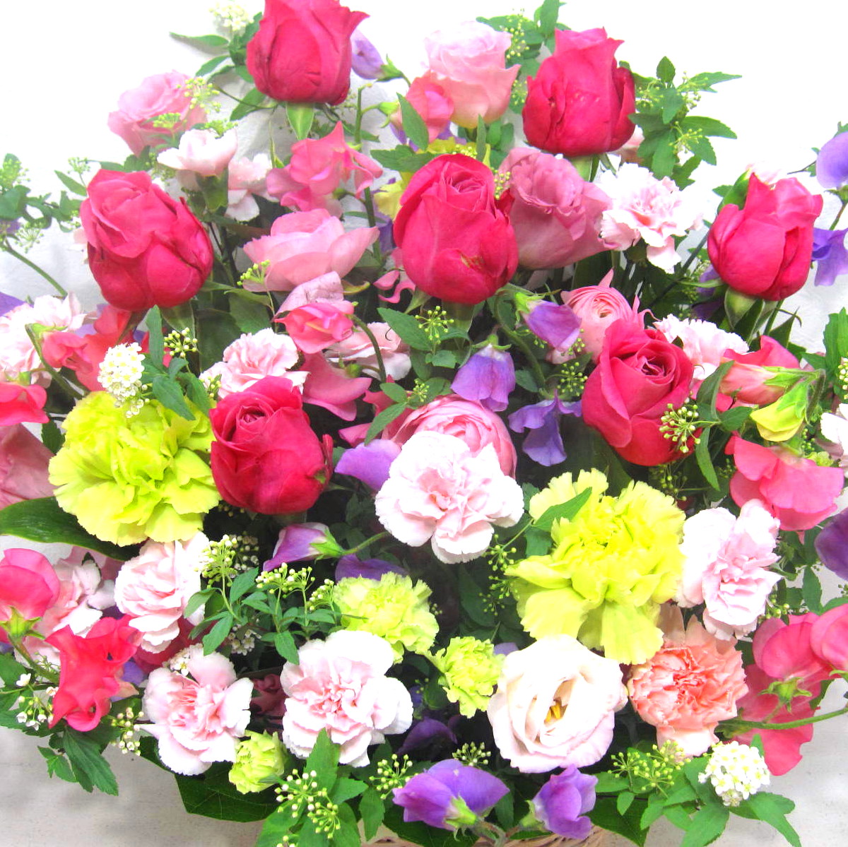 春らしい明るいミックス系の上品でボリューム感のある豪華なアレンジメントです。宮崎県産の「スイートピー」を使用、人気の高い「バラ」や「ラナンキュラス」、「カーネーション」なども入れてまるでお花見をしている雰囲気が漂い、華やかな素敵な仕上がりとなっております。春の甘い香りが、きっと心を癒してくれるでしょう。また、ご利用されたお客様から「大変花持ちが良い」と好評をいただいております。静岡県長泉町から日本全国【真心】込めてお届けいたします。春のさまざまなご用途に贈る贈り物としてオススメです。大切な方へ贈るフラワーギフトやプレゼントなら「花樹園オンラインドットコム」に是非、お任せ下さいませ。