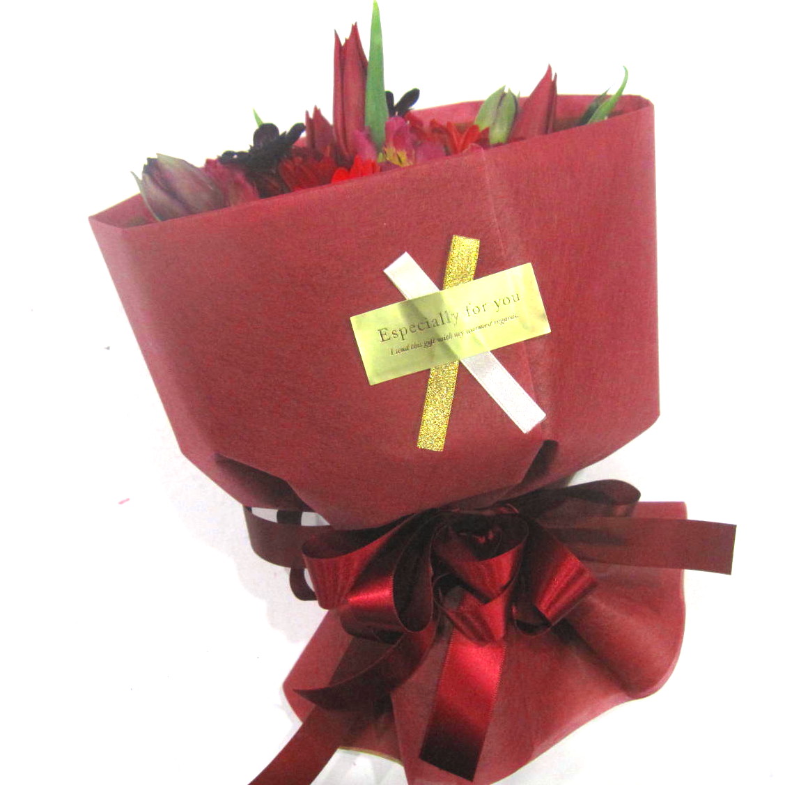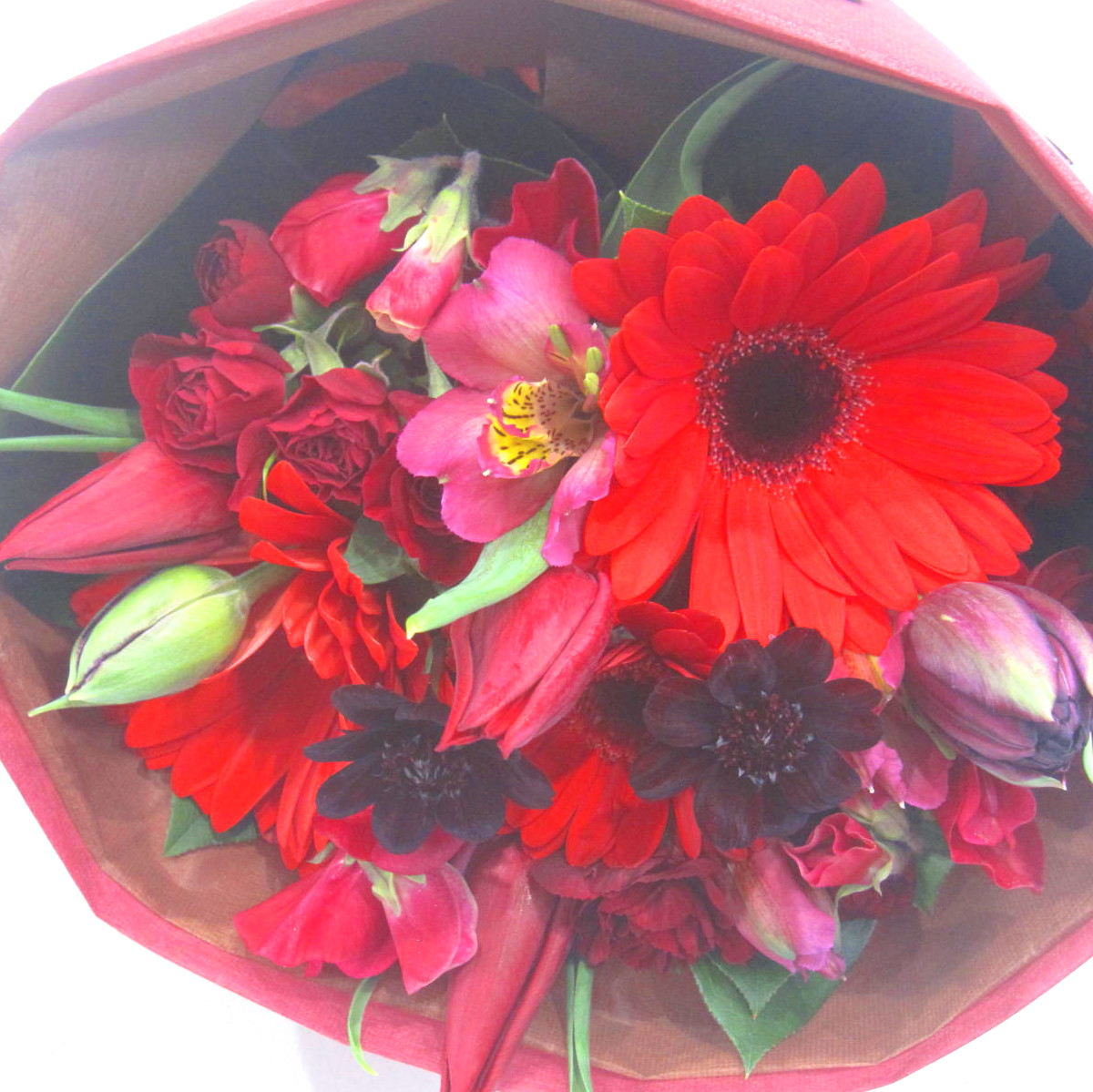 赤系の春の落ち着いたブーケ風花束です。お洒落でセンスの良い春の贈り物にいかがでしょうか。また、持ちの良いお花を中心に使っておりますので花持ちも良いでしょう。ご購入されたお客様から高い評価を頂いております。静岡県長泉町から日本全国【真心】込めてお届けいたします。さまざまなご用途に贈る贈り物としてオススメです。大切な方へ贈るフラワーギフトやプレゼントなら「花樹園オンラインドットコム」に是非、お任せ下さいませ。