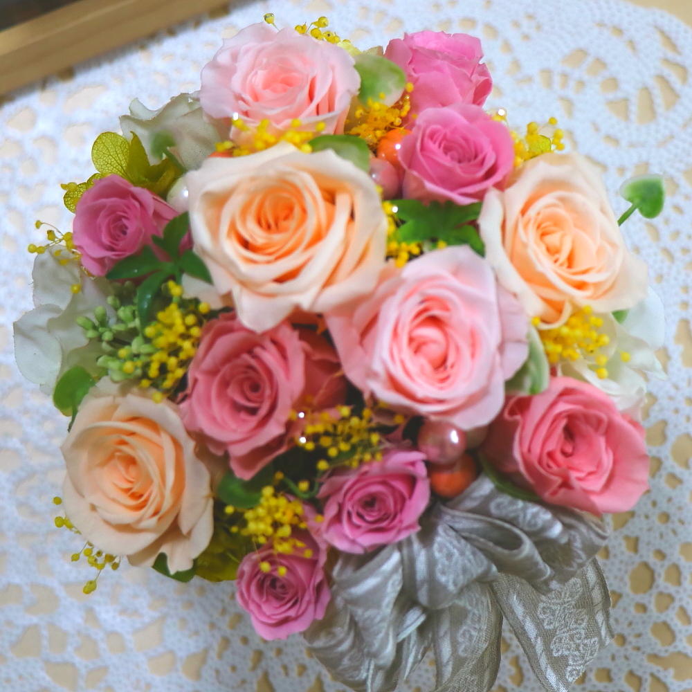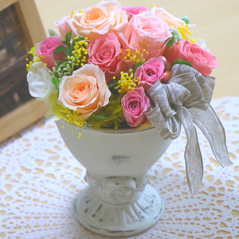 プリザーブドローズをパステル色だけでまとめた優しい雰囲気のプリザーブドフラワー。特別な贈り物にいかがでしょうか。【15時迄のご注文で翌日届きます】※こちらの商品についてのご相談、ご質問等ございましたら(メール)または(お電話)にて承ります。