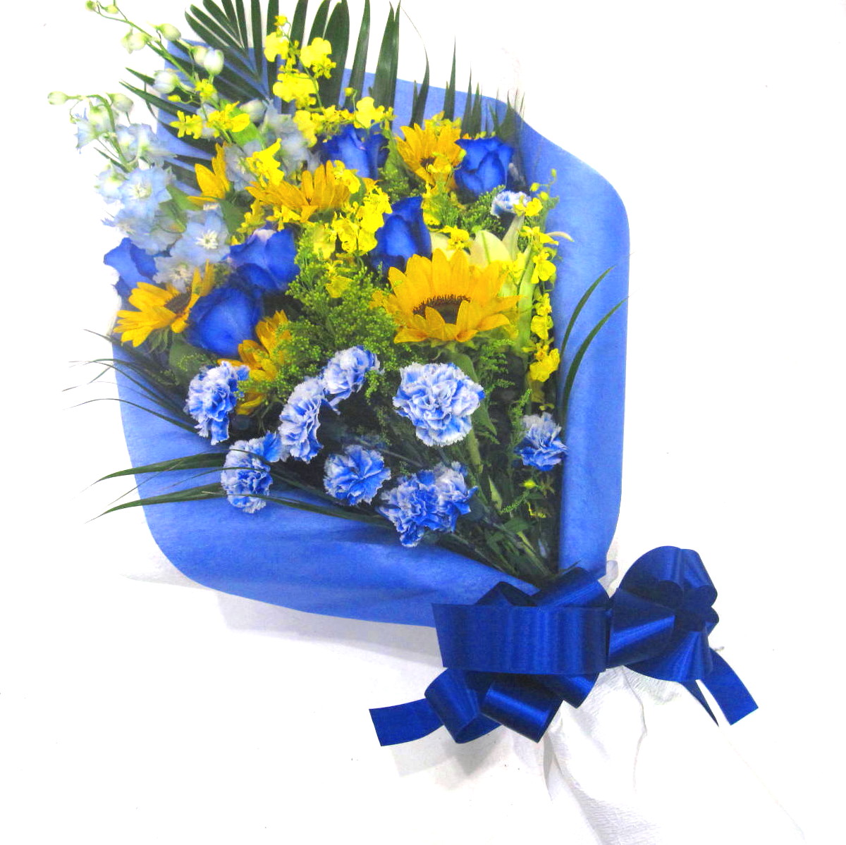 スタイリッシュで個性的な花束です。この夏のギフトにピッタリな色合いです。ラッピングも白&ブルー系で上品にお包みします。また、持ちの良いお花を中心に使っておりますので花持ちも良いでしょう。ご購入されたお客様から高い評価を頂いております。静岡県長泉町から日本全国【真心】込めてお届けいたします。さまざまなご用途に贈る贈り物としてオススメです。大切な方へ贈るフラワーギフトやプレゼントなら「花樹園オンラインドットコム」に是非、お任せ下さいませ。