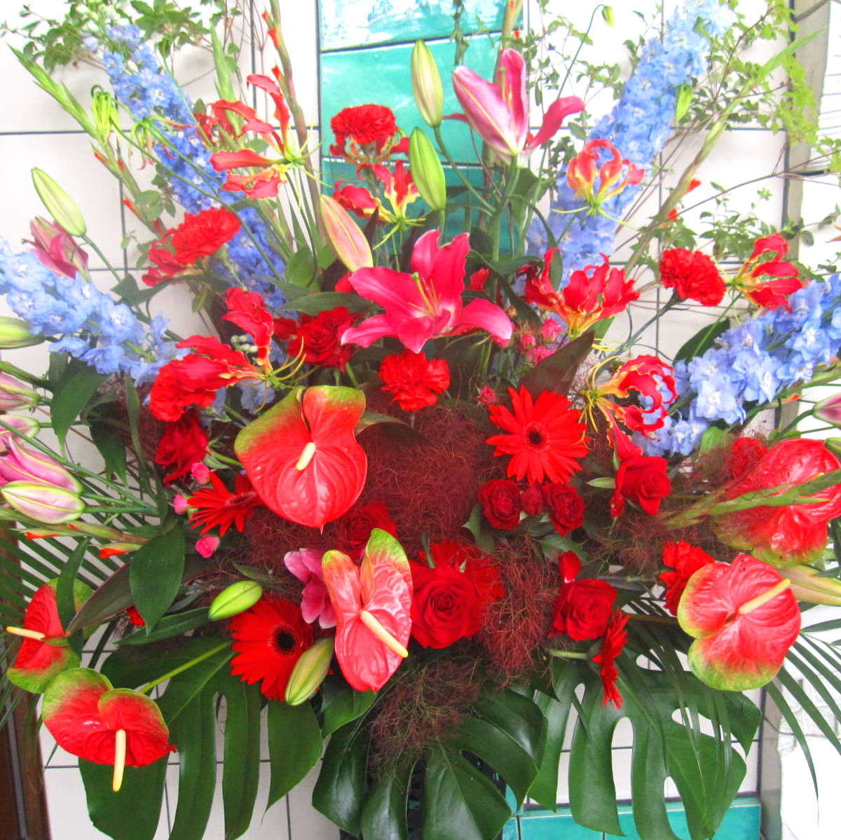 12時迄のご注文で全国のお花屋さんから当日手渡しお届けOK!!お洒落なアイアンのスタンド台に赤系のお花をアレンジしたスタンド花。落ち着いた高級感のある色合いはさまざまなアニバーサリーにピッタリな色合いです。【※注意※注文の際、提携する花屋さんからのお届けとなりますので宅急便代金¥1000(税別)を発注手数料として頂きます。予めご了承下さい。】「こちらの商品は、クレジットカード決済のみとなります。(GMO後払いはご利用できません)」