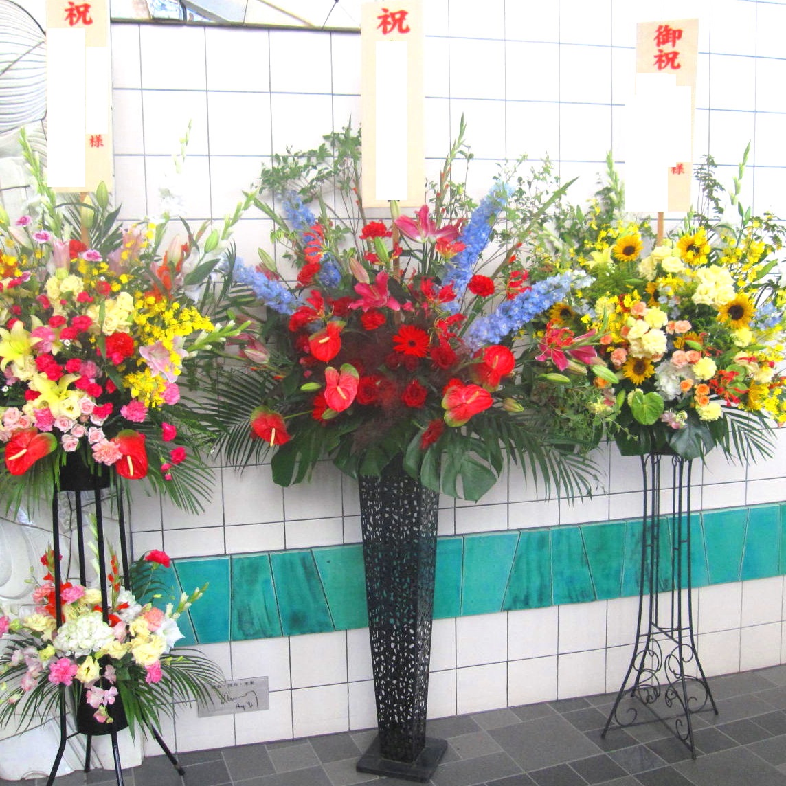 お洒落な赤系の御祝いアイアンスタンド花1段になります。開店祝・発表会・個展・イベントなどパッと目を惹く花のオブジェそれぞれのシーンに合わせてお作り致します。どんな場所にもシンプルに飾れて、それぞれのシーンを華やかに彩ります。また、ご利用されたお客様から「大変花持ちが良い」と好評をいただいております。静岡県長泉町から日本全国【真心】込めてお届けいたします。さまざまなご用途に贈る贈り物としてオススメです。大切な方へ贈るフラワーギフトやプレゼントなら「花樹園オンラインドットコム」に是非、お任せ下さいませ。「当日配達可能地域」北海道・青森県・秋田県・岩手県・宮城県・山形県・福島県・茨城県・栃木県・群馬県・埼玉県・千葉県・東京都・神奈川県・山梨県・新潟県・長野県・富山県・石川県・福井県・岐阜県・静岡県・愛知県・三重県・滋賀県・京都府・大阪府・兵庫県・奈良県・和歌山県・鳥取県・島根県・岡山県・広島県・山口県・徳島県・香川県・愛媛県・高知県・福岡県・佐賀県・長崎県・熊本県・大分県・宮崎県・鹿児島県・沖縄県 ※イベントが無事終わりましたら、スタンドの台と立て札を無料で回収に伺います。ご安心下さい。