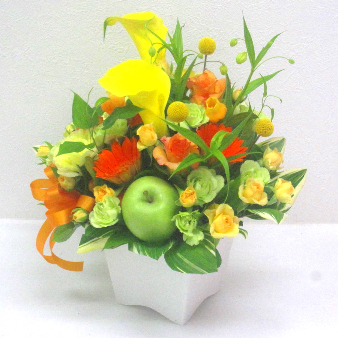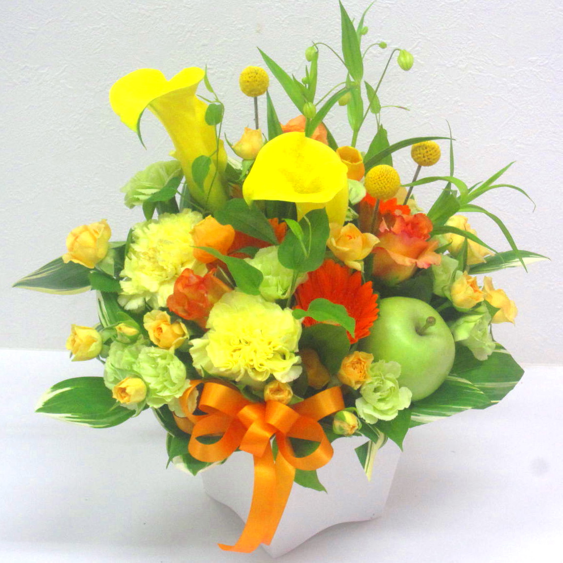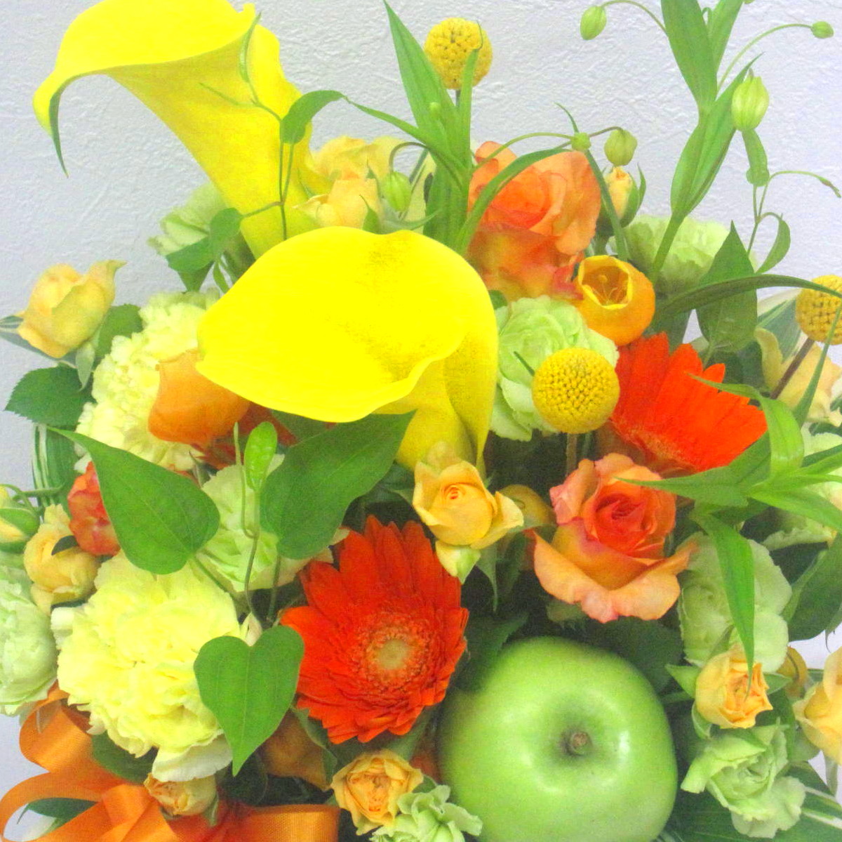 明るい元気色の素敵なアレンジメントです。明るく活発な方への贈り物や元気になってほしい方へのお見舞いにオススメですよ。また、ご購入されたお客様から高い評価を頂いております。静岡県長泉町から日本全国【真心】込めてお届けいたします。さまざまなご用途に贈る贈り物としてオススメです。大切な方へ贈るフラワーギフトやプレゼントなら「花樹園オンラインドットコム」に是非、お任せ下さいませ。