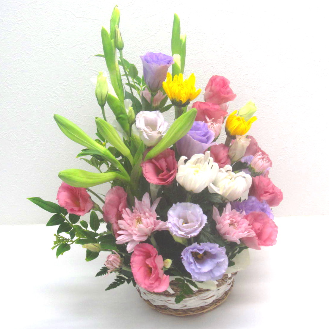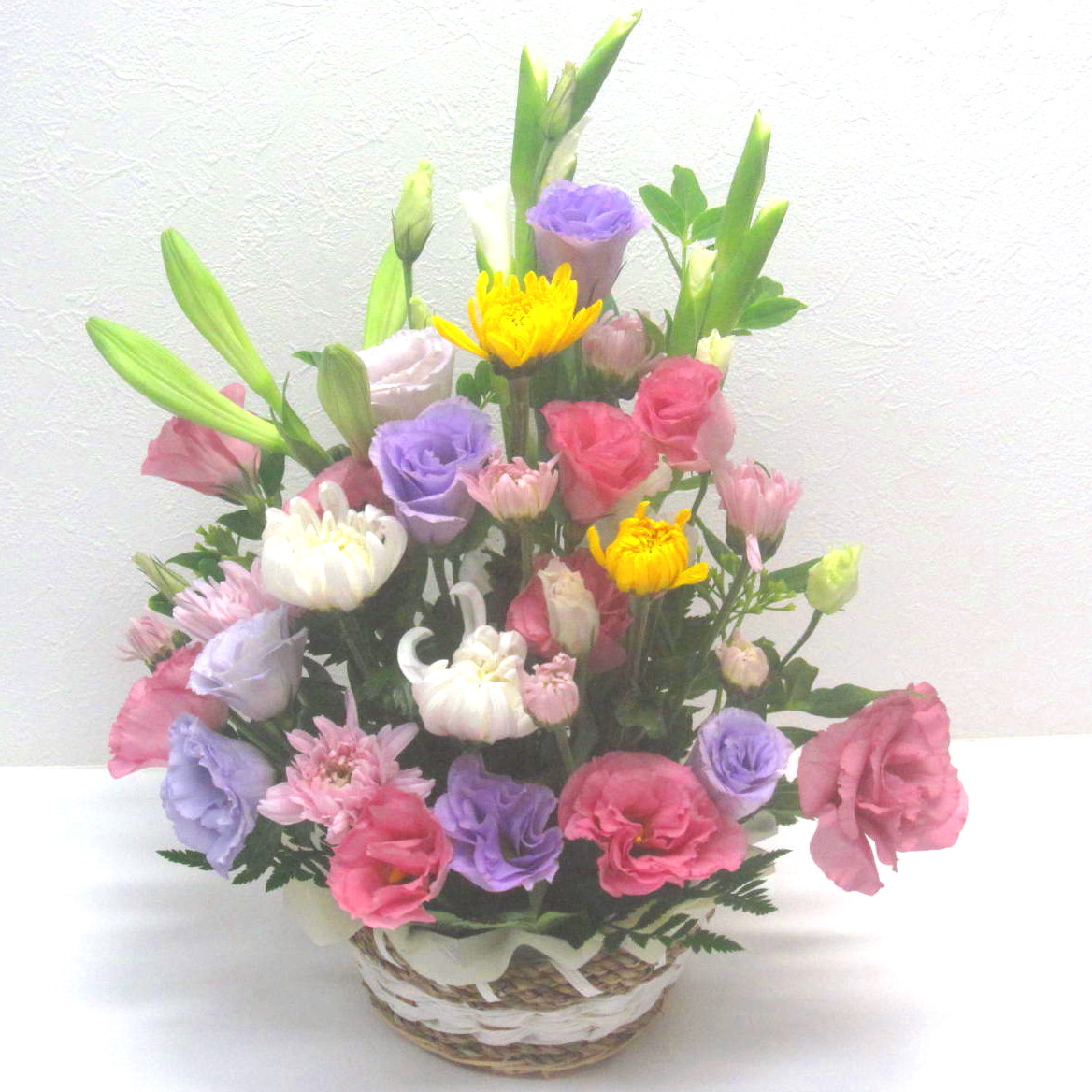 「キク」や「トルコギキョウ」を主体にしたアレンジメントです。明るい雰囲気で制作致します。また、花持ちも良い花材を中心に使い上品にまとめます。目を閉じて心の中にいる故人への想いをそっと呼び起こします。当店では、お客様のその想いをしっかりと受け止め、心を込めて制作致します。静岡県から全国へお届けします。故人を偲ぶ色々なシーンで是非、ご利用下さい。