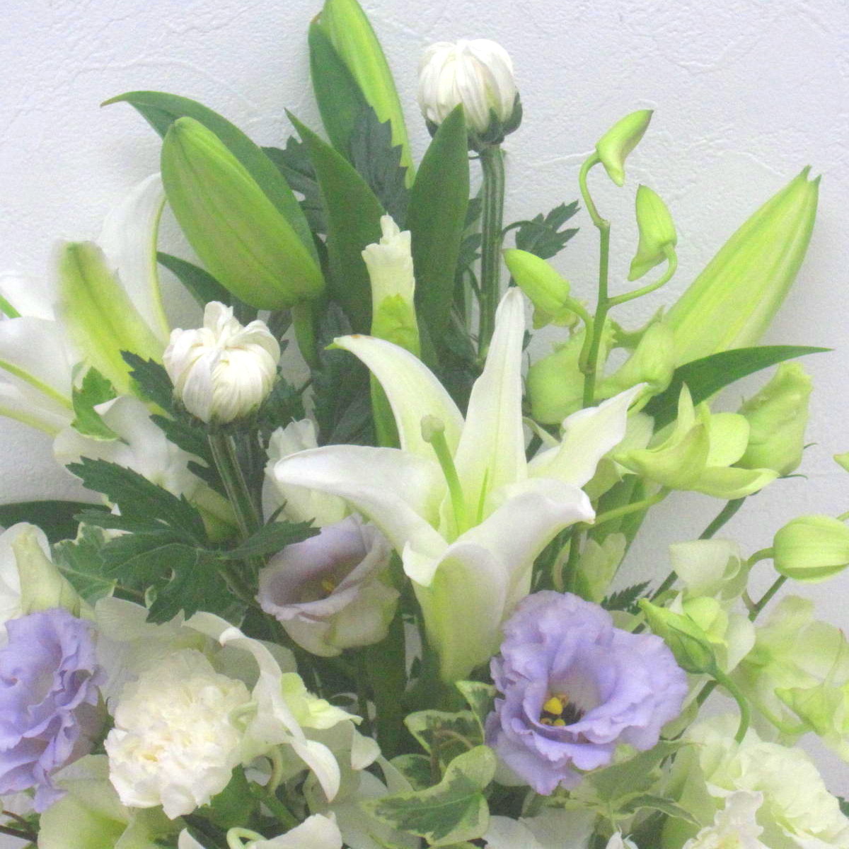 透き通るようなみずみずしい色合いが素敵なアレンジメントです。また、花持ちも良い花材を中心に使い上品にまとめます。目を閉じて心の中にいる故人への想いをそっと呼び起こします。当店では、お客様のその想いをしっかりと受け止め、心を込めて制作致します。静岡県から全国へお届けします。故人を偲ぶ色々なシーンで是非、ご利用下さい。