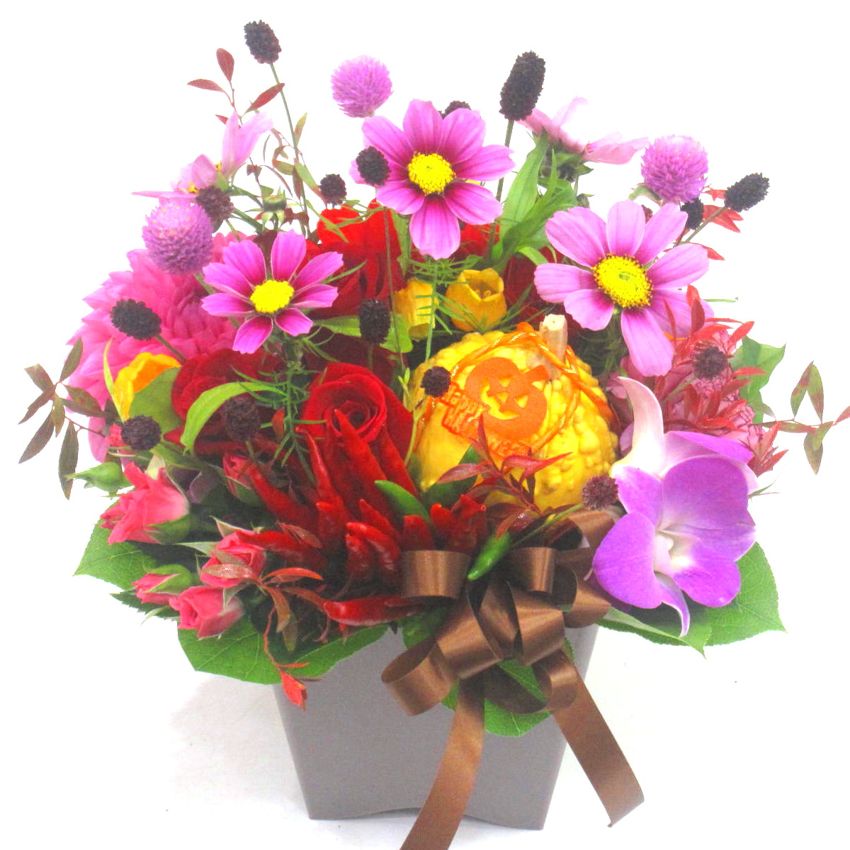 秋の花材とカボチャを入れたこの季節にピッタリなハロウィン風のアレンジメント。どんな用途にも絶対喜ばれること間違いなしです。【15時迄のご注文で翌日届きます】※こちらの商品についてのご相談、ご質問等ございましたら(メール)または(お電話)にて承ります。