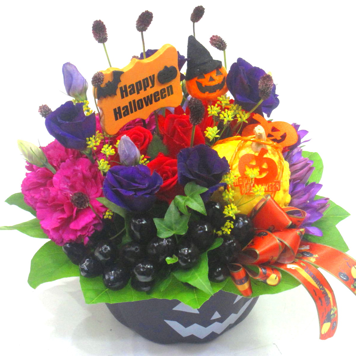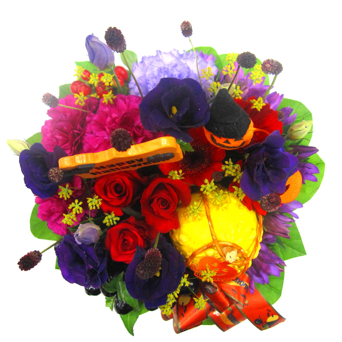 秋の花材を入れたボリューム感のある秋色の落ち着いたハロウィンアレンジメント。大人っぽい方への贈り物にいかがですか。【15時迄のご注文で翌日届きます】※こちらの商品についてのご相談、ご質問等ございましたら(メール)または(お電話)にて承ります。
