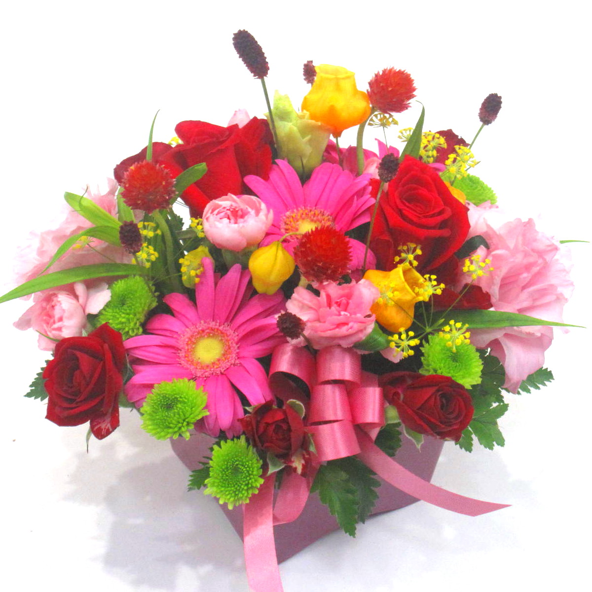 秋らしい濃い目のピンク&レッド系のアレンジメントです。こじんまりと可愛らしいサイズの大きさとなります。また、ご利用されたお客様から「大変花持ちが良い」と好評をいただいております。静岡県長泉町から日本全国【真心】込めてお届けいたします。さまざまなご用途に贈る贈り物としてオススメです。大切な方へ贈るフラワーギフトやプレゼントなら「花樹園オンラインドットコム」に是非、お任せ下さいませ。