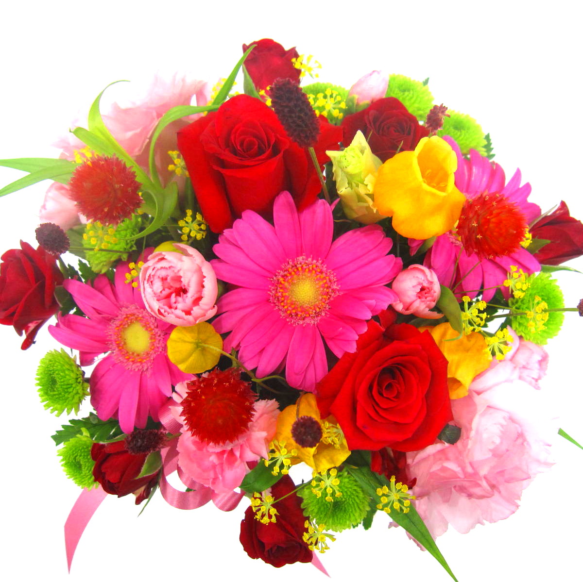 花材: メイン ワレモコウ、バラ、ガーベラ、カーネーション、トルコギキョウ、秋の小花など その他 葉物類など