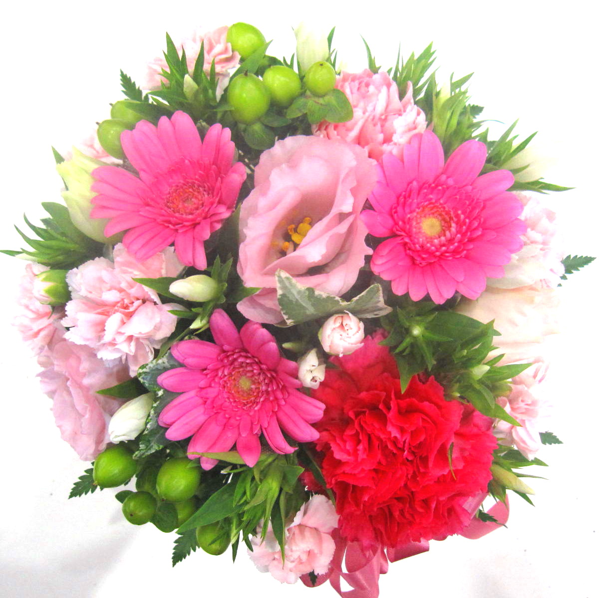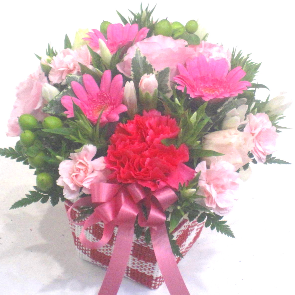 花材: メイン ガーベラ、カーネーション、トルコギキョウ、リンドウなど その他 実物類、葉物類など