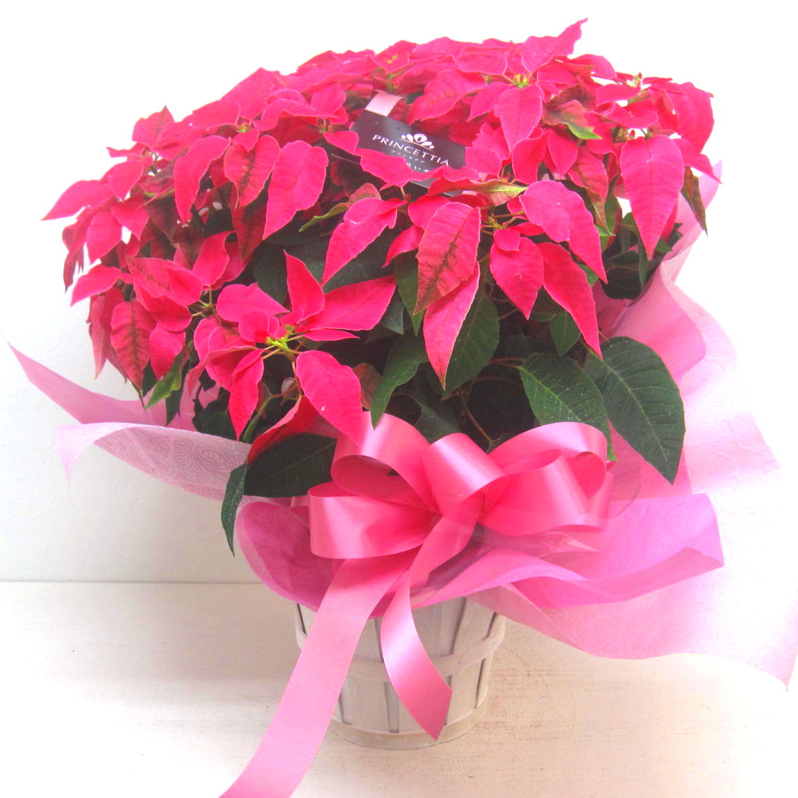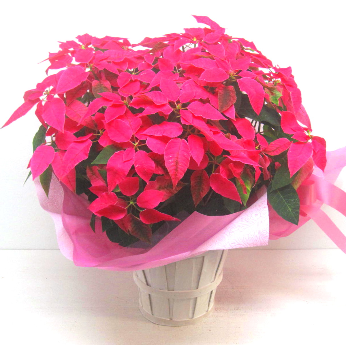 大人気のプリンセチアをバスケットに入れた花鉢。濃いピンク色でとっても華やかな雰囲気です。花言葉は「思いやり」あなたの大切な方へ冬の贈り物にいかがでしょうか。【15時迄のご注文で翌日届きます】※こちらの商品についてのご相談、ご質問等ございましたら(メール)または(お電話)にて承ります。