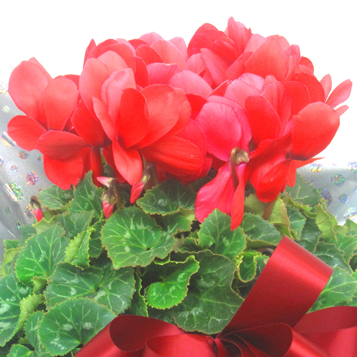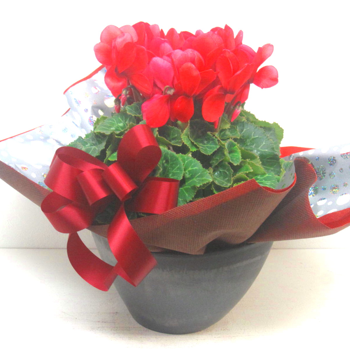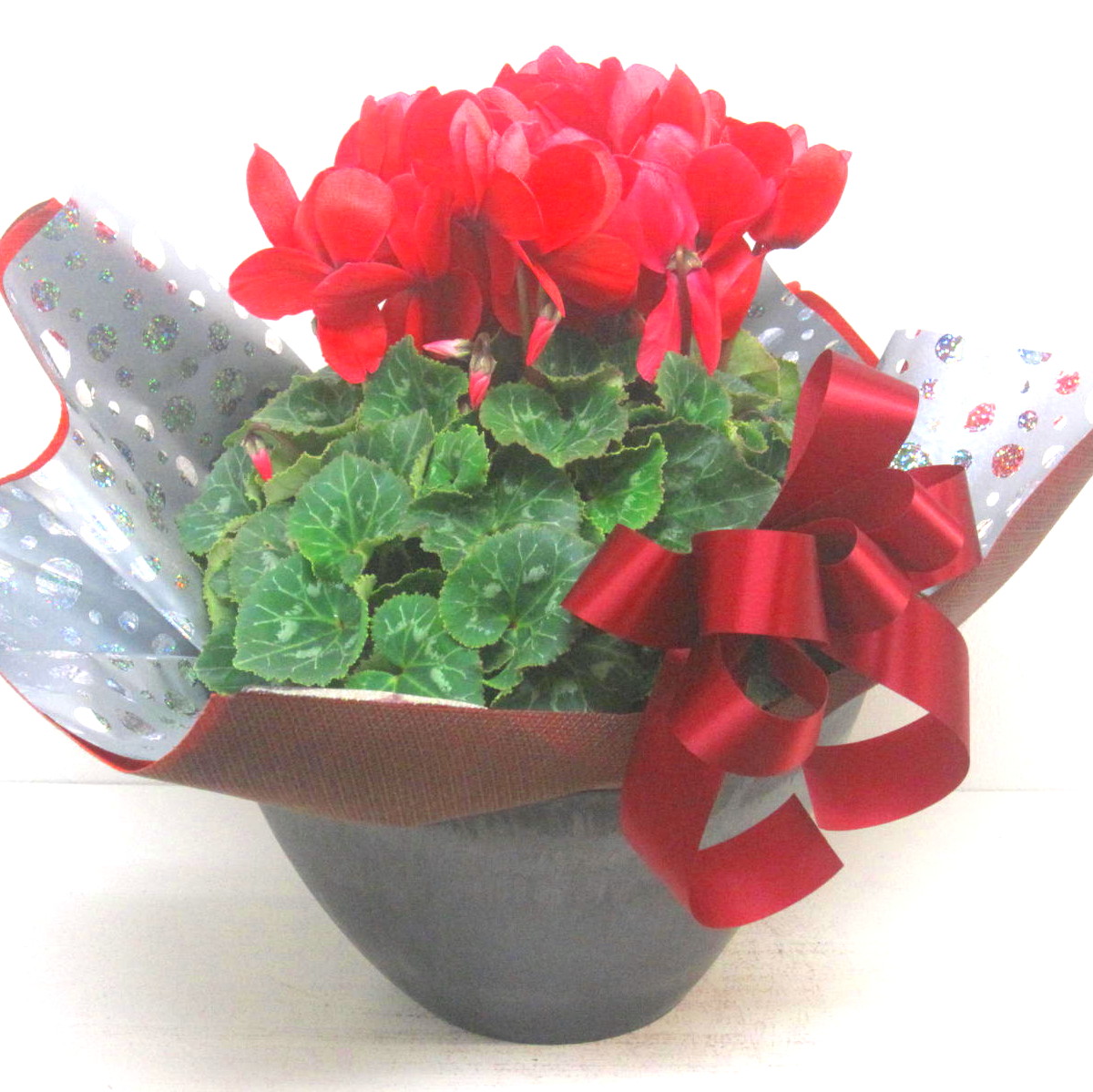 花材: メイン シクラメン【赤】(6号鉢) その他 画像のように綺麗に美しくラッピング致します。