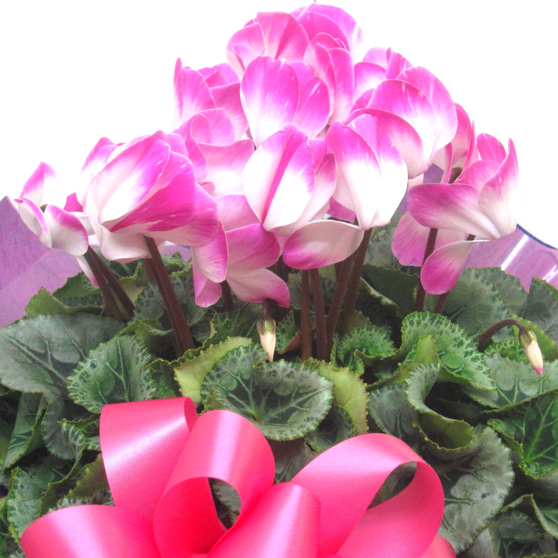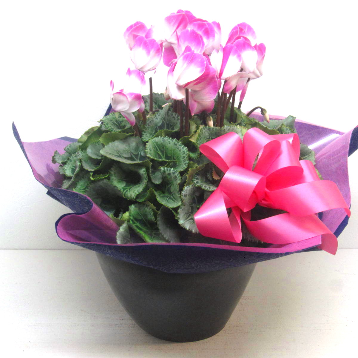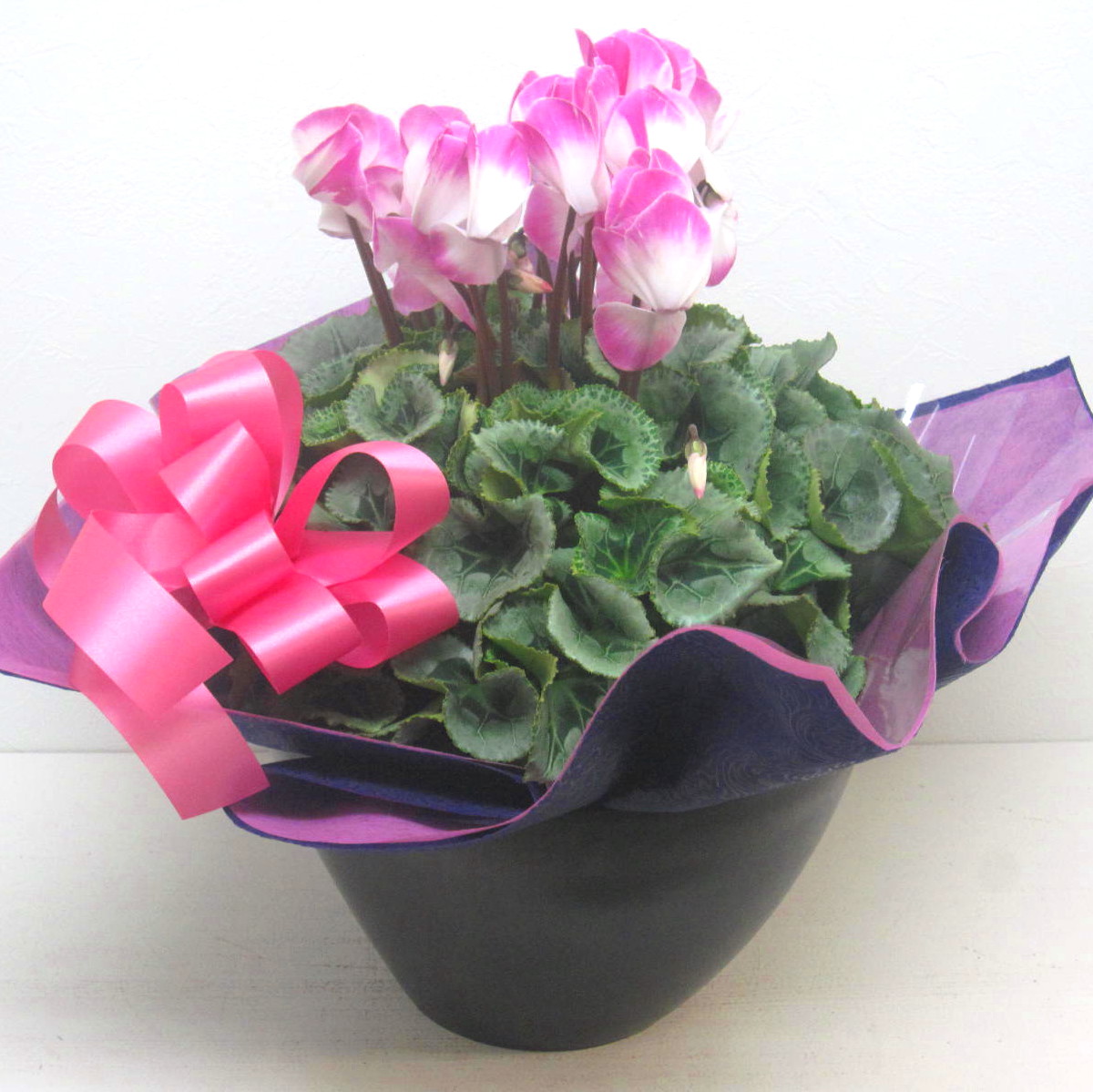 花材: メイン シクラメン【複色ピンク】(6号鉢) その他 画像のように綺麗に美しくラッピング致します。