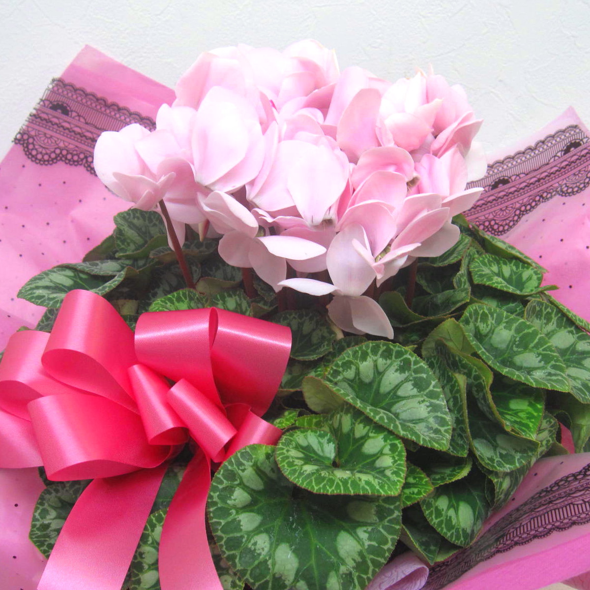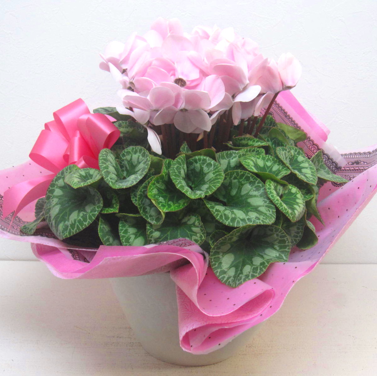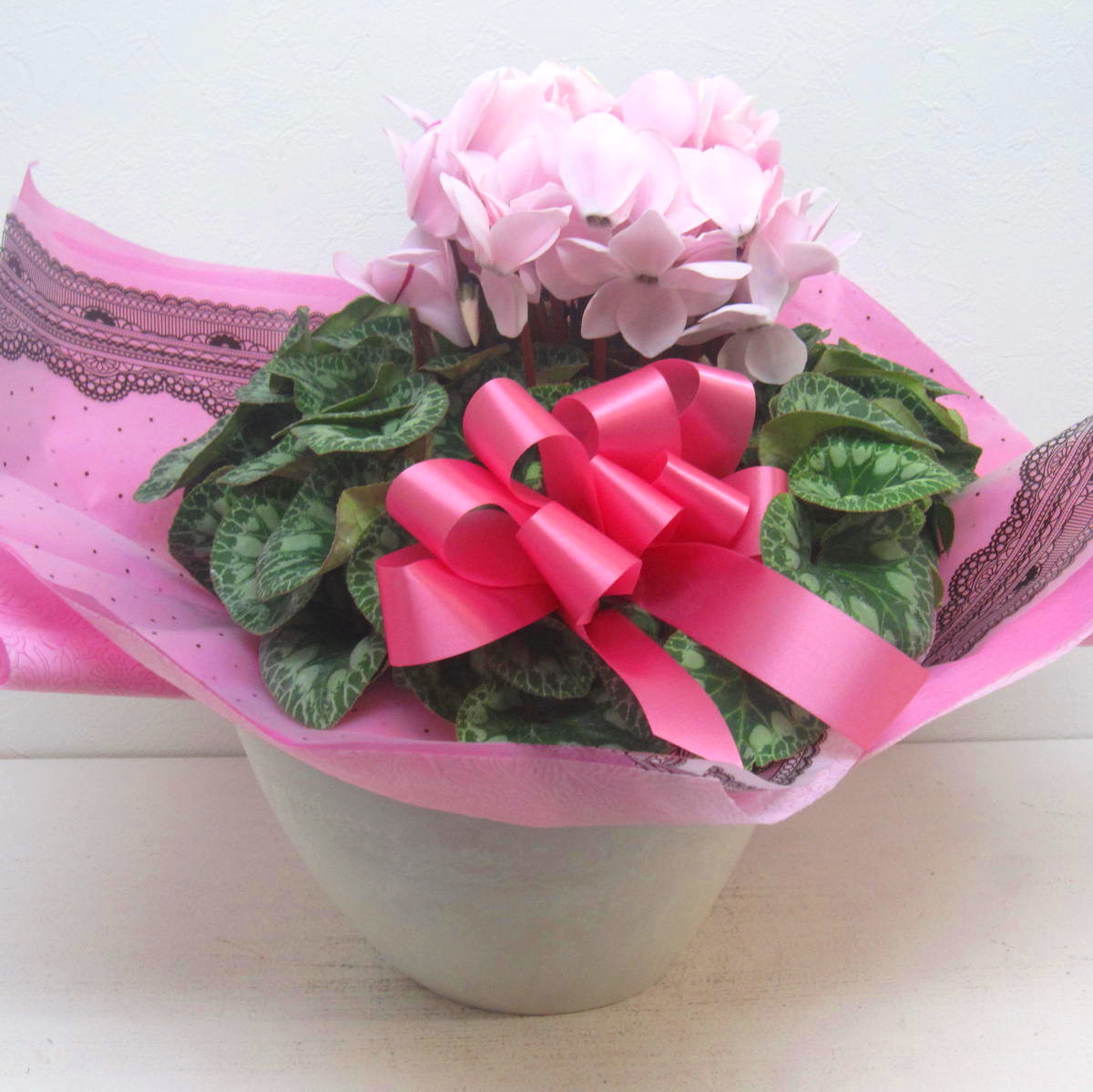 花材: メイン シクラメン【パールピンク】(6号鉢) その他 画像のように綺麗に美しくラッピング致します。